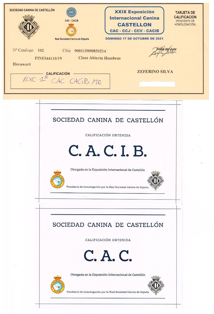 17/10/21: Exposition Internationale de Castellon (Espagne): Exc1 en CO, CAC, CACIB, BOB