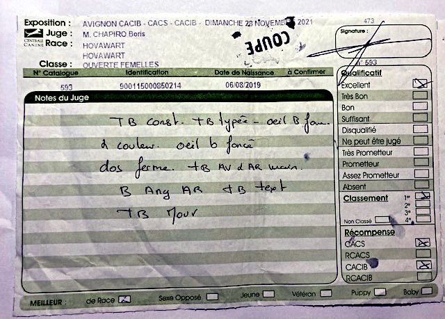 28/11/21: Exposition Internationale d'Avignon, Exc1, CAC, CACIB, BOB, juge Boris Chaipro