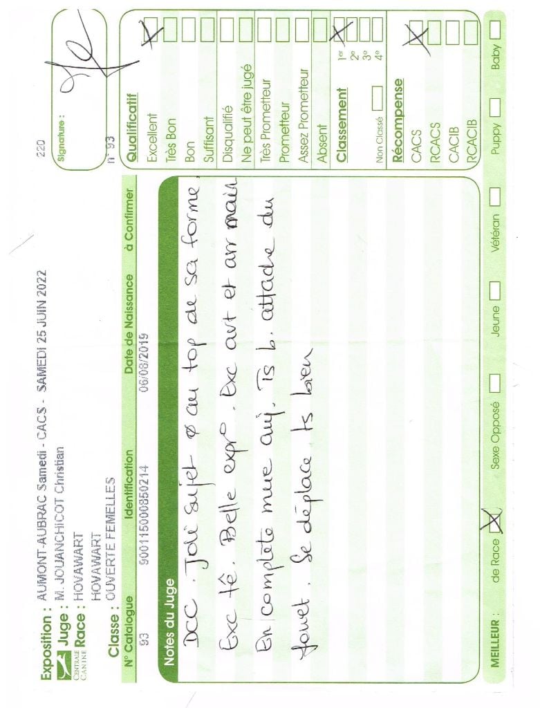 25/06/22: Exposition Nationale d'Aumont Aubrac, Exc1, CAC, BOB, juge C Jouanchicot