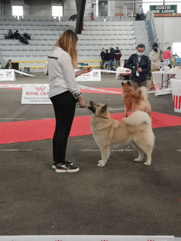 Maika à fait quelques expo où elle a obtenu dans l'ensemble de très bon résultats (excellent, Rcacs, Cacs, Rcacib) Elle a également obtenu son CSAU mention excellent et son pass agility où elle s'éclatait en concours,d'ailleurs cela nous manque beaucoup car depuis sa portée et l'annulation de concours à cause du Covid, l'année 2020 nous a pas permis d'en faire,et nous en avons plus fait car la catégorie D en agility a été supprimé mais elle est toujours partante pour aller au club ou à la maison faire de l'agility en entraînement où c'est un véritable bon moment qu'on passe toute les deux.
