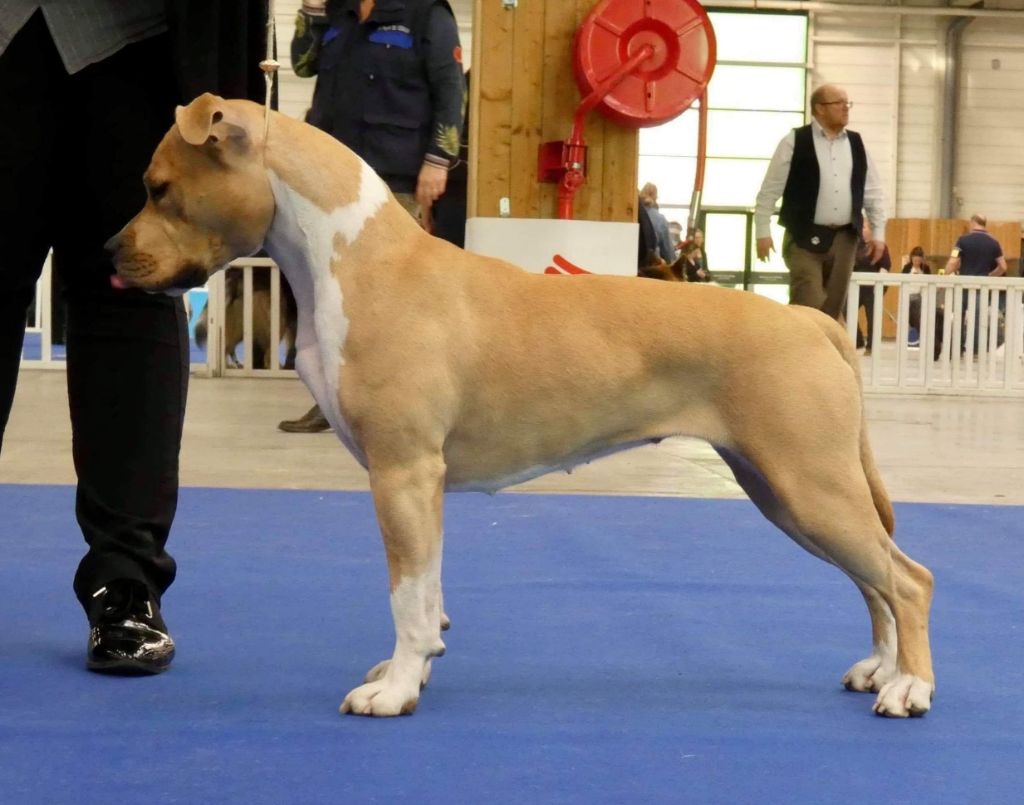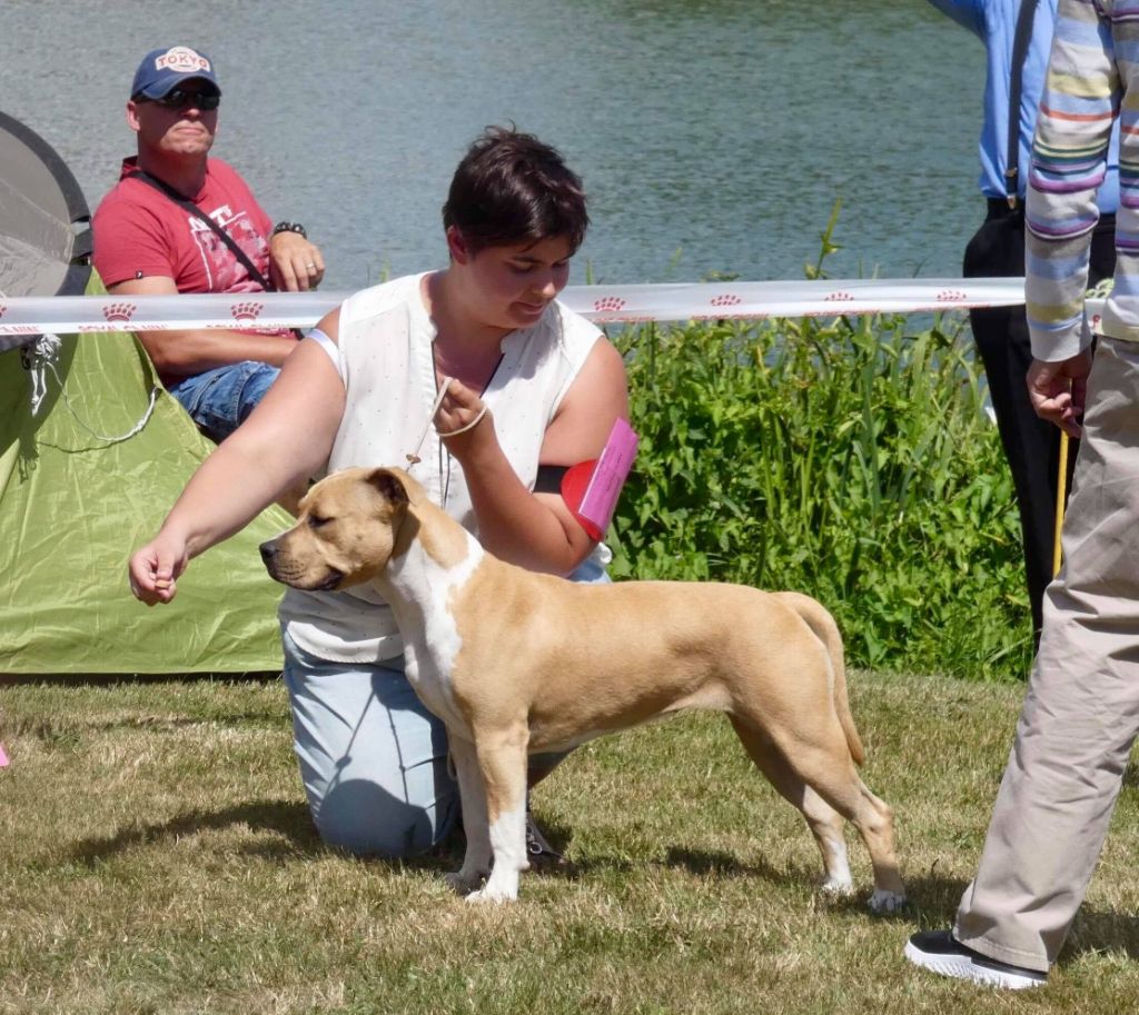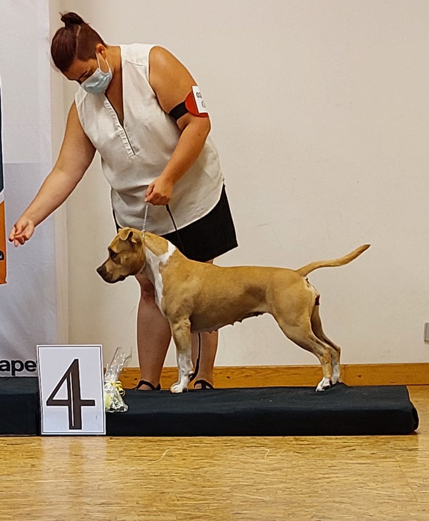 DCC. Jolie femelle, bonnes proportions, bonne pigmentation.Excellente tête chargée en babine.Excellents cou, dos, queue, poitrine.Excellents avant et arrière mains et pieds. Mouvement un peu désordonné aujourd'hui. (mademoiselle était une vraie pile électrique ce jour là)
