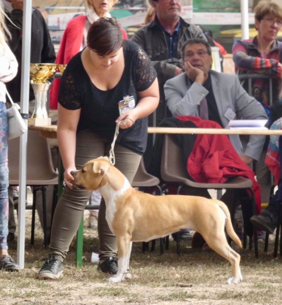 Handling : AnneliseToise : 48cmDCCExcellents : Caractère/tempérament, pigmentation/poil/couleur, tête, yeux, oreilles, cou, corps, poitrine, épaules/avant-main et arrière-main.Très bon : aspect général/type/expression (forte femelle masculine), queue attache et port (un peu haute), pieds (un peu ouverts) et allures (serre de l'avant)