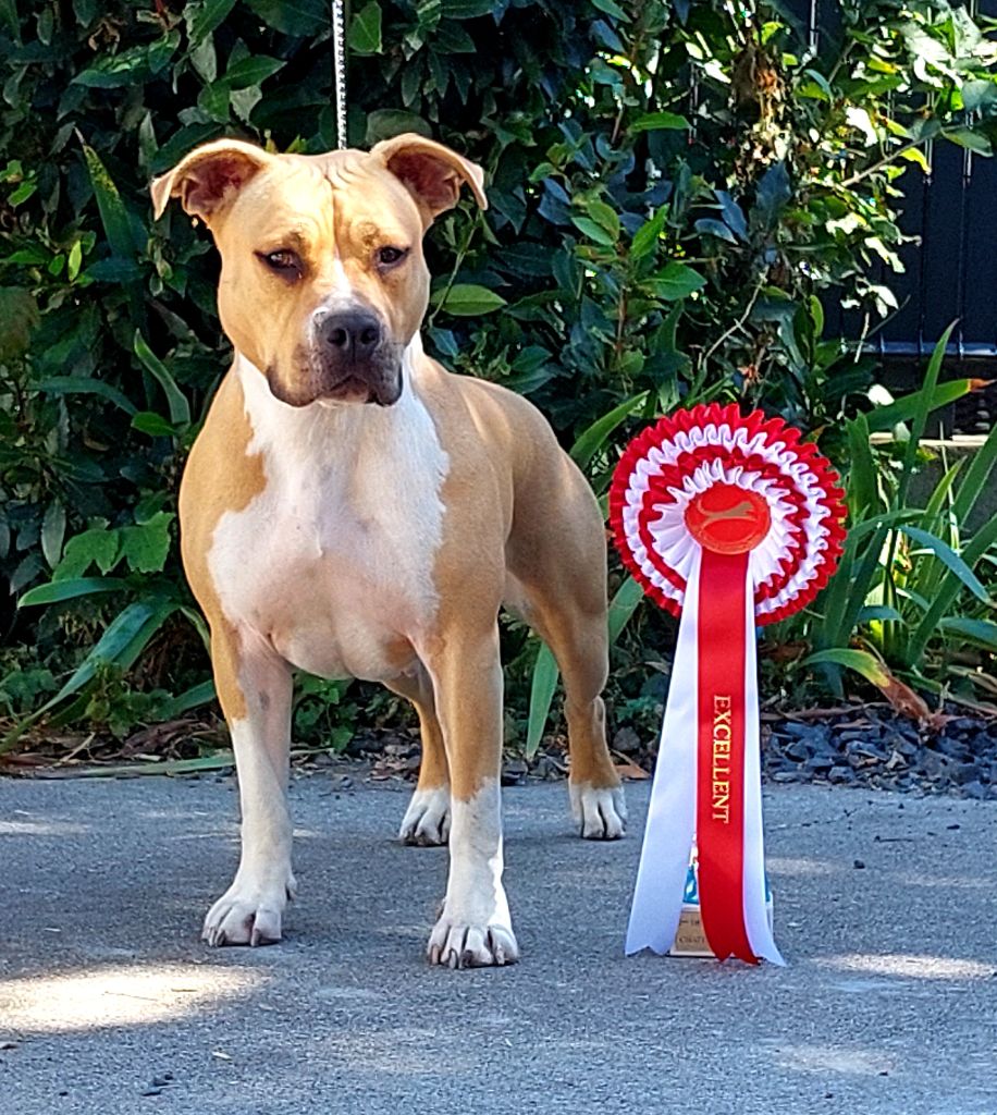 De bonne taille pour son âge, bonne tête, bon devant, bonne ossature, bonne ligne de dos, bon port de queue, bonne angulation arrière, bon aspect général, bien présenté