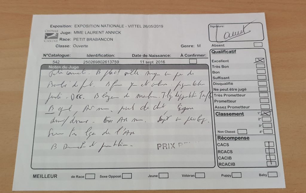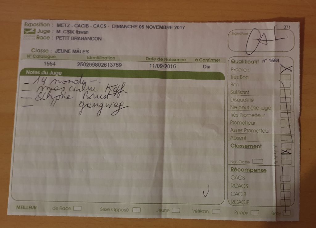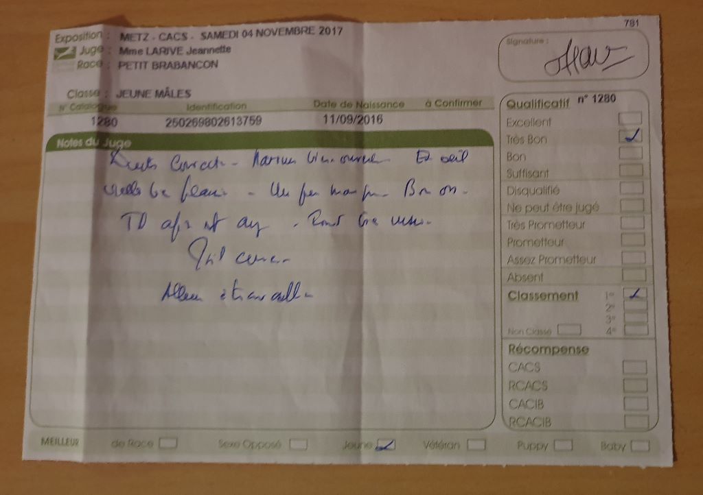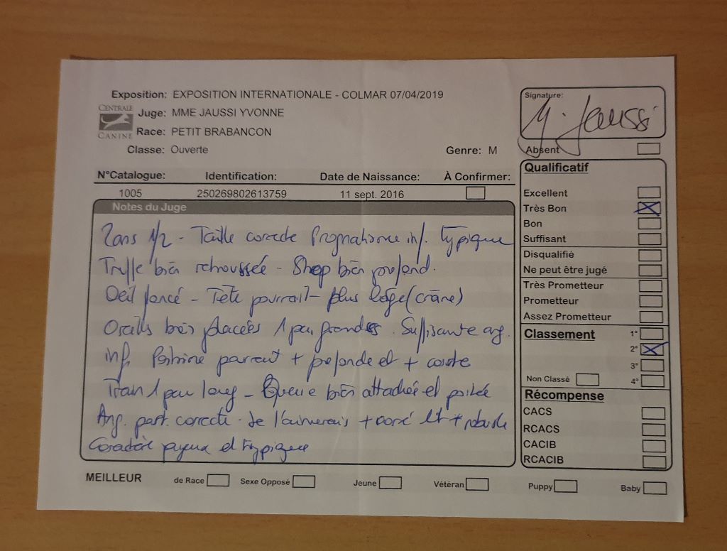 - 1 Excellent CACS - CACIB Meilleur de race