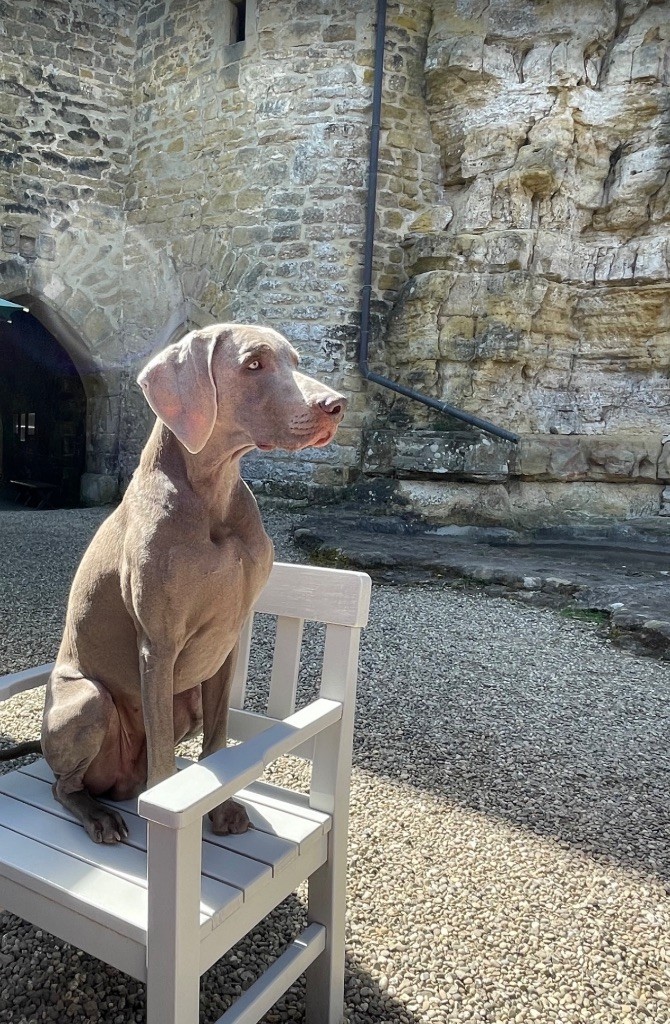 Excellent format, typé Braque de Weimar, sans aucun excès, jolie tête. Oreilles bien attachées, excellente dentition, excellent épaules, excellents avant main, belle sortie encolure, excellente poitrine, belles angulations arrières, bon fouet, excellente ligne de dessus et excellent mouvement.