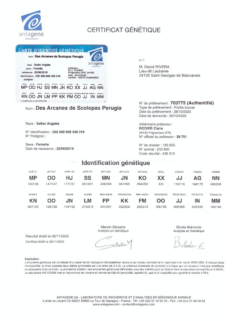 Chien Setter Anglais des Arcanes de Scolopax Perugia