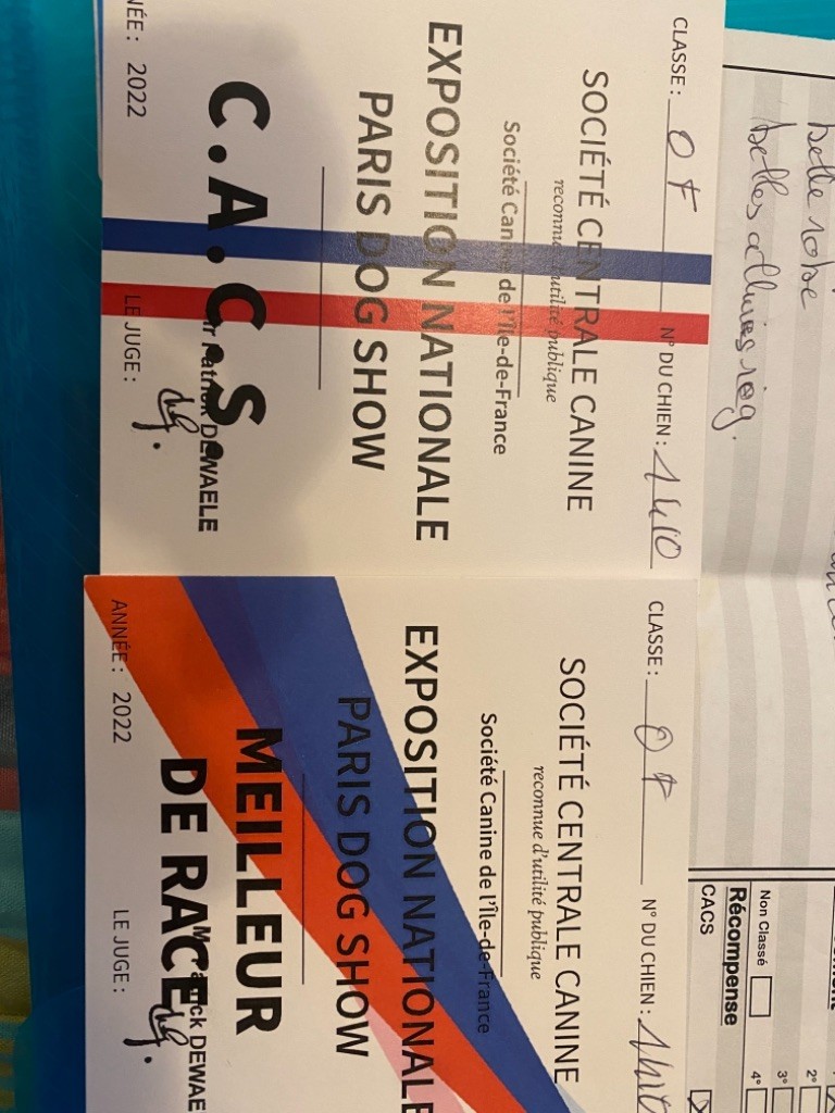 - Cacs - Cacib meilleur de race et 2 eme de groupe 9