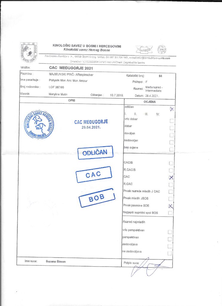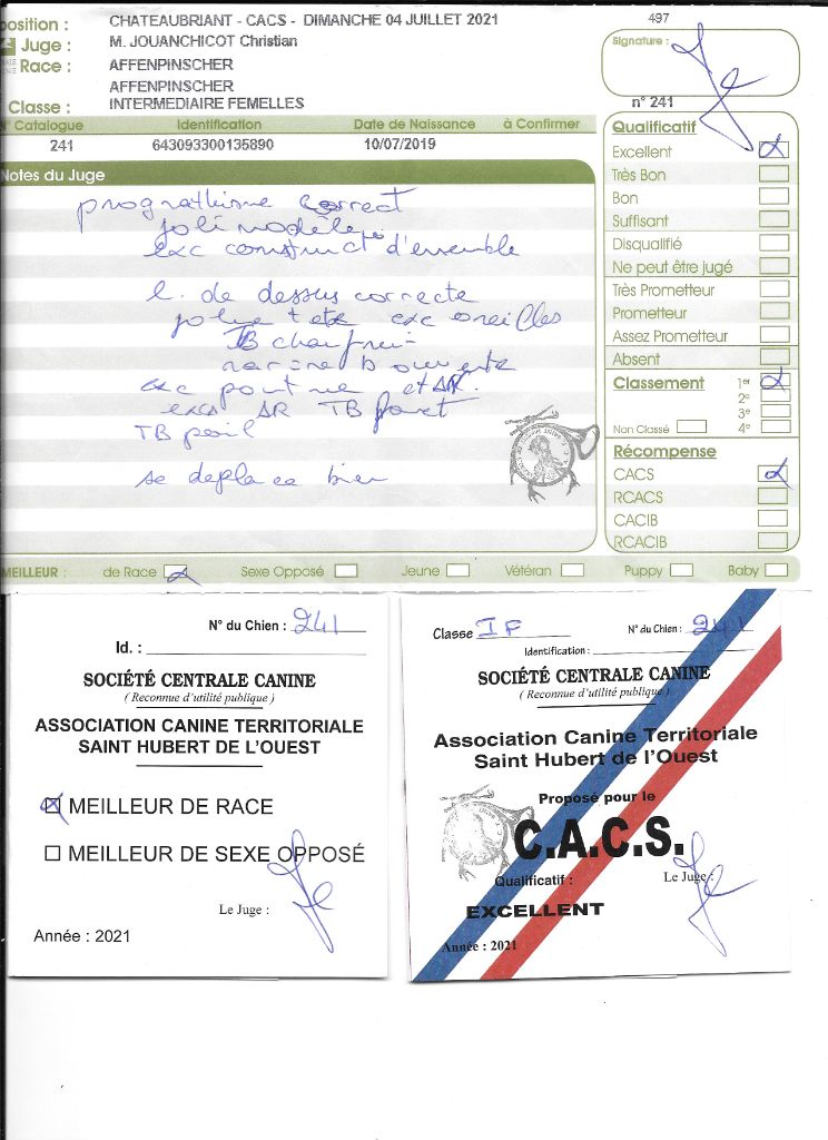 - 1° EXCELLENT CACS CACIB Meilleur de RACE