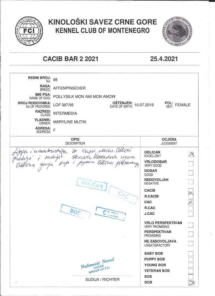 Manifestion : CAC CACIB BOB - Juge : NEDIMOVIC NENAD