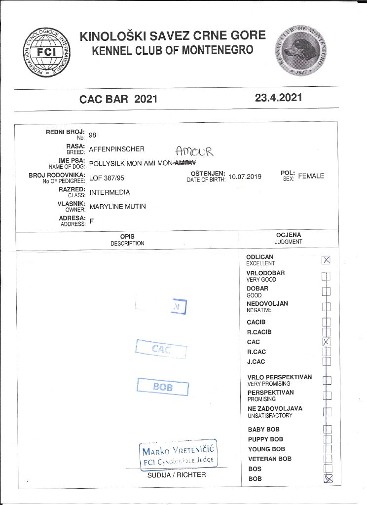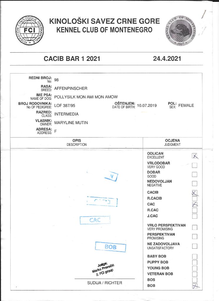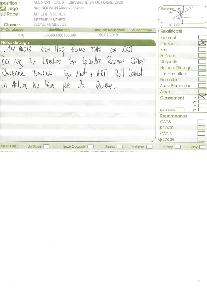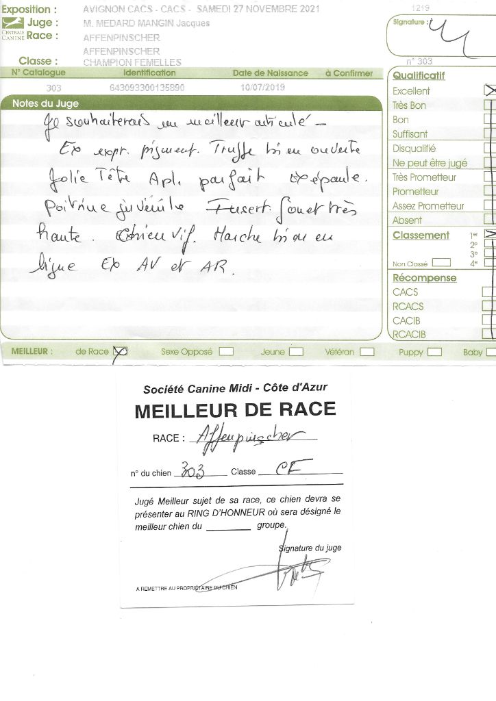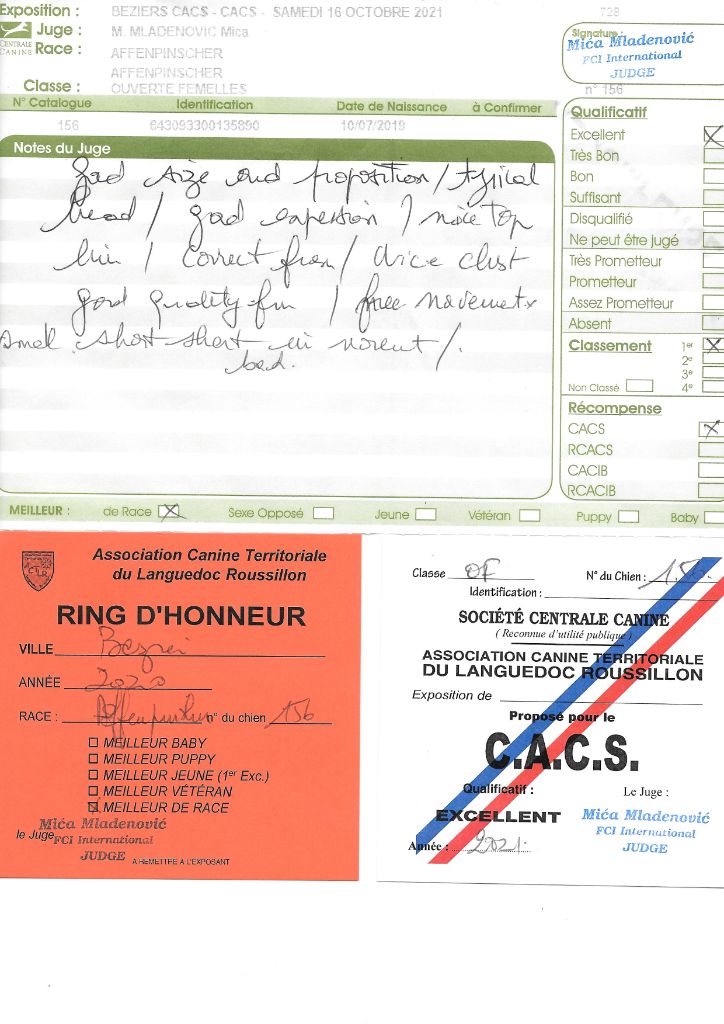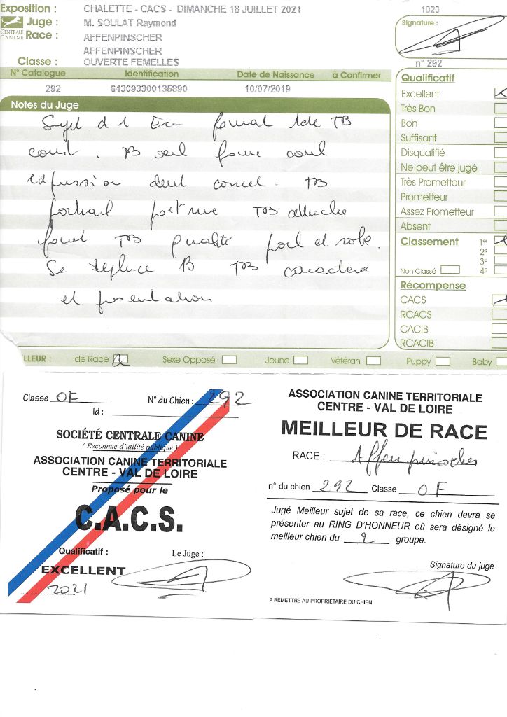 - 1° CACS MEILLEUR de RACE spéciale Affenpinscher