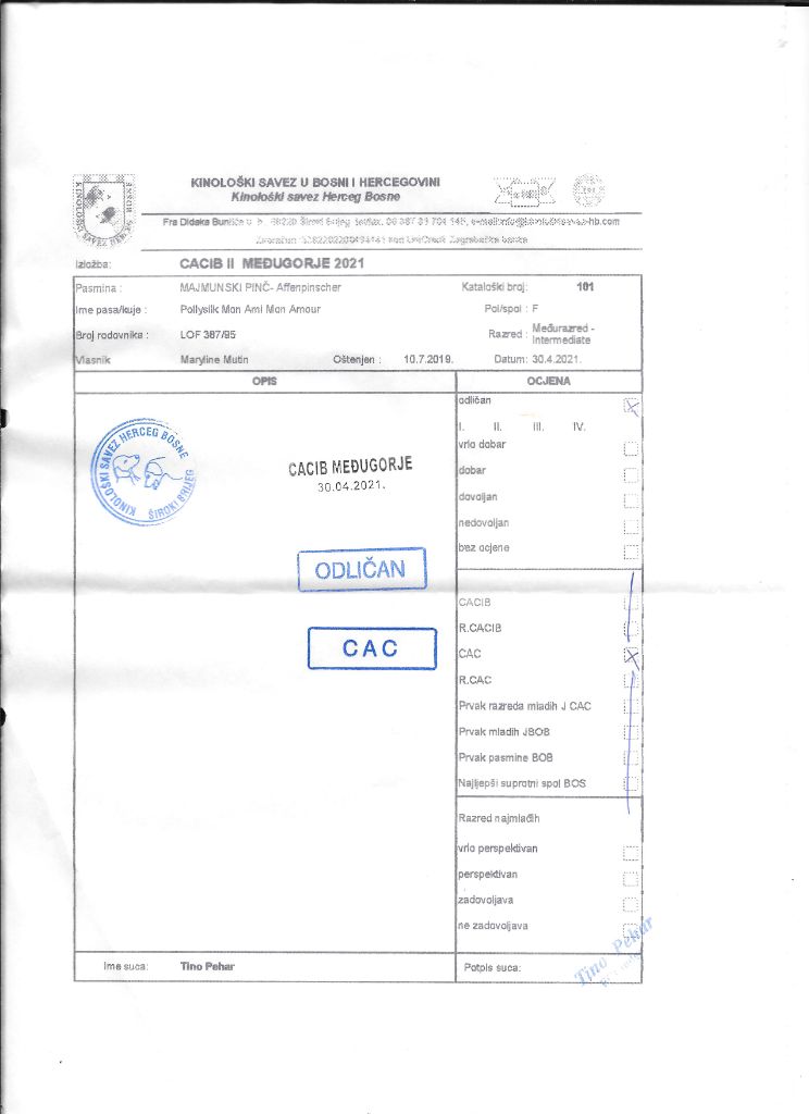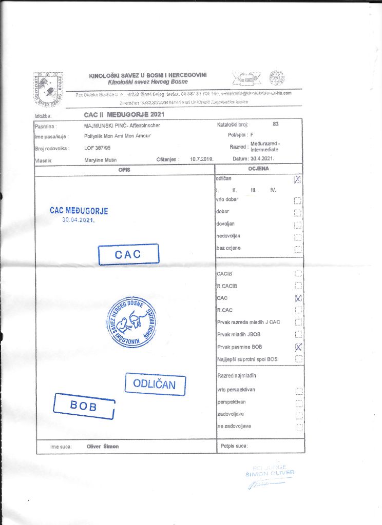 Manifestion : CAC - Juge : Mr MARKO VRETENICIC