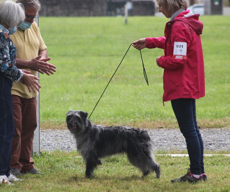 Bonne taille ,puissance et proportion ,très féminineexc type bon ?il ,TB dessus ,poitrine et angulation ensemble harmonieux Aplomb Correct exc Allures ,Types de la race Se présente bien