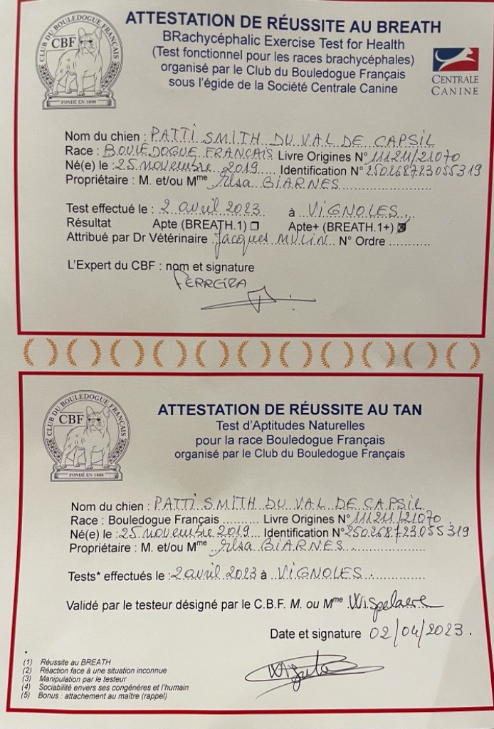 Chien Bouledogue français Patti smith Du Val De Capsil
