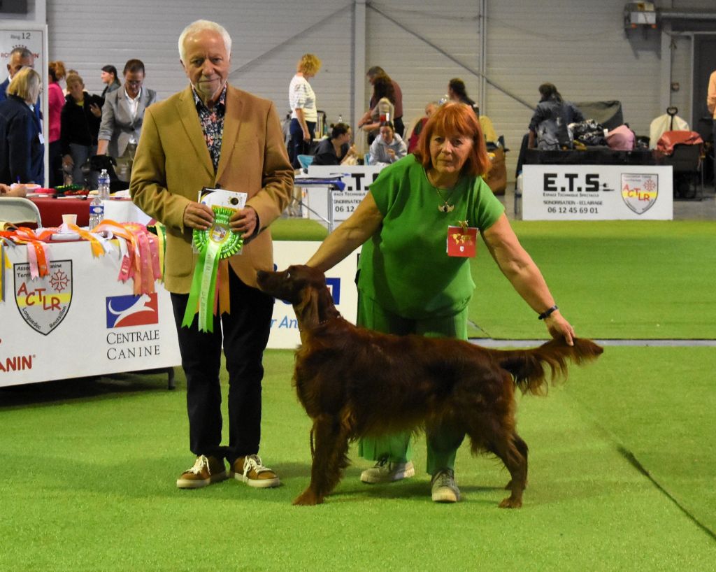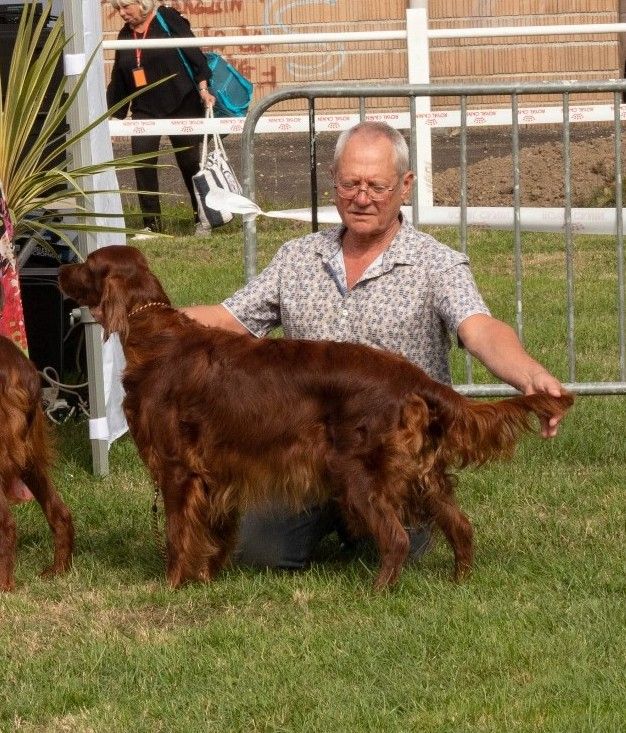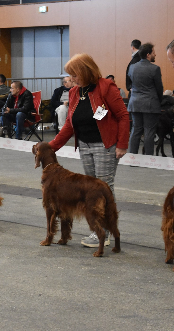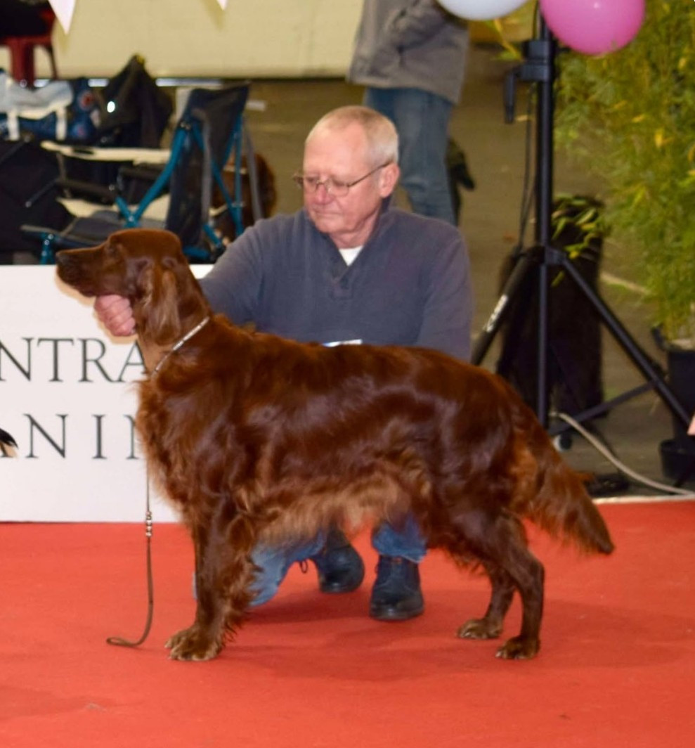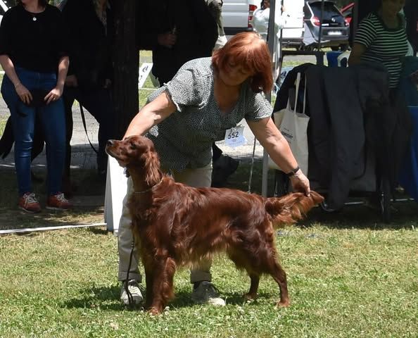 1 fois MEILLEUR BABY 4 fois MEILLEUR PUPPY 4 fois Meilleur jeune 1 fois Meilleur jeune de groupe 7 1 fois 3ème Meilleur jeune de groupe 7 31 CAC (France) dont 1 en spéciale de race 2 RCACIB en intermédiaire 5 RCACIB en ouverte en spéciale de race 3 RCACIB en classe champion 1 RCAC en ouverte en spéciale de race 11 CACIB en ouverte dont 1 en speciale de race 7 CACIB en classe champion dont 1 en spéciale de race 24 fois meilleur champion 6 RCAC en intermédiaire 2 RCACS en classe ouverte dont 1 à Monaco 2 CACIB + 5 CAC + 2 RCACIB 2 FOIS MEILLEUR DE SEXE OPPOSE à SAN MARINO + 1 fois Meilleur de race 1 CACIB + CAC en Italie 1 RCACIB + CAC en Italie 1 RCACIB + RCAC à MONACO 3 CAC + 2 CACIB + 2 fois 2ème meilleur de groupe en BOSNIE 3 CAC EN CROATIE 2Anw Dt CH VDH + 5 R.Anw DT CH VDH + 1 CAC + 2 RCAC + 1 RCACIB BOB en spéciale de Race pointer setter club Bayern (Germanie) 26 fois Meilleur de Race 12 fois meilleur de sexe opposé 2 Fois 1er Groupe 7 5 FOIS 2ème Groupe 7 7 fois 3ème Groupe 7 3 RCACS EN SLOVAQUIE 6 CACS EN ROUMANIE 3 RCACIB EN ROUMANIE 2 FOIS MEILLEUR DE RACE EN ROUMANIE 2 CACS A MONTENEGRO 1 CACIB A MONTENEGRO 1 MEILLEUR DE RACE A MONTENEGRO 2 CACS EN CROATIE 1 RCACS EN CROATIE 1 RCACIB EN CROATIE 1 FOIS MEILLEUR DE SEXE OPPOSE EN CROATIE 1 CACIB + CAC + MEILLEUR DE SEXE OPPOSE AU PORTUGAL 1 CACIB+ CAC + MEILLEUR DE RACE EN ESPAGNE 1 CACIB + CACM - MEILLEUR DE SEXE OPPOSE A MONACO + Qualification Crufts 2 Qualification Crufts (2022 et 2023) Meilleur Setter Irlandais 2022 en France au classement Dogs Révélation Awards Meilleur setter irlandais femelle 2023 au classement Dogs Révélation Awards TITRES DE CHAMPION : CHAMPIONNE DE BEAUTE FEDERALE DE BOSNIE HERZEGOVINE CHAMPIONNE DE BEAUTE DE BOSNIE HERZEGOVINE CHAMPIONNE INTERNATIONALE D'EXPOSITION CHAMPIONNE DE CROATIE CHAMPIONNE DE ROUMANIE GRAND CHAMPION DE ROUMANIE CHAMPION DE MONTENEGRO CHAMPION OF THE BALKANS CHAMPION OF THE MEDITERRANEE CHAMPION OF THE ADRIATIQUE CHAMPION OF NATO CHAMPION OF THE YOUGOSLAVIE CHAMPION SAINT MARIN "Italie" CHAMPIONNE D'ALLEMAGNE VDH