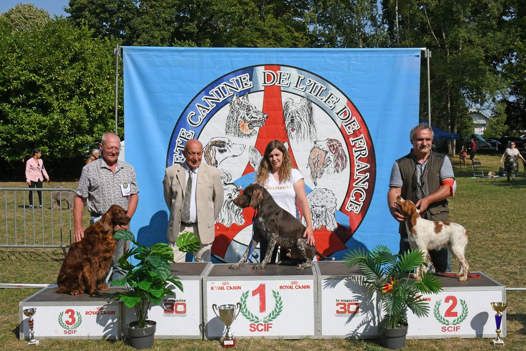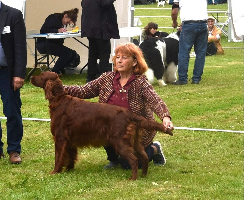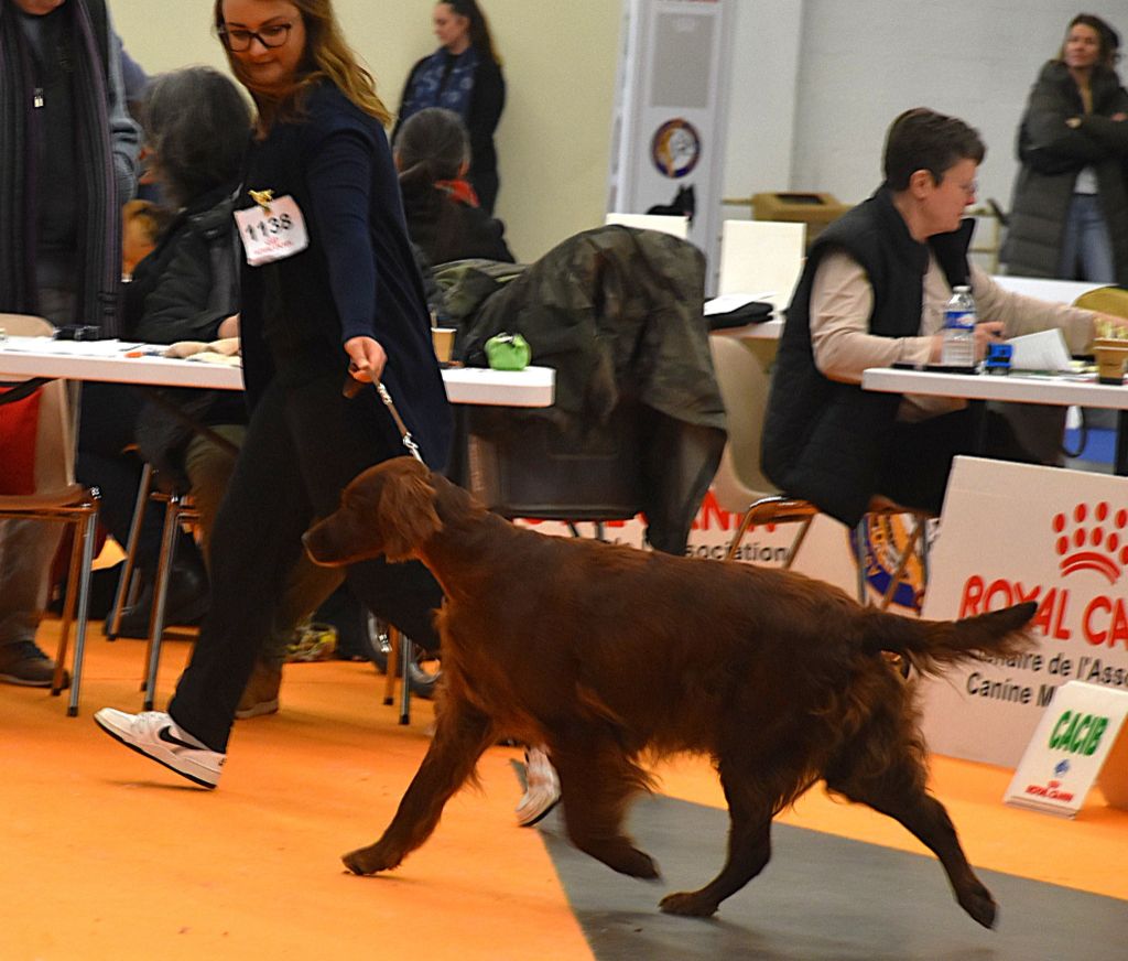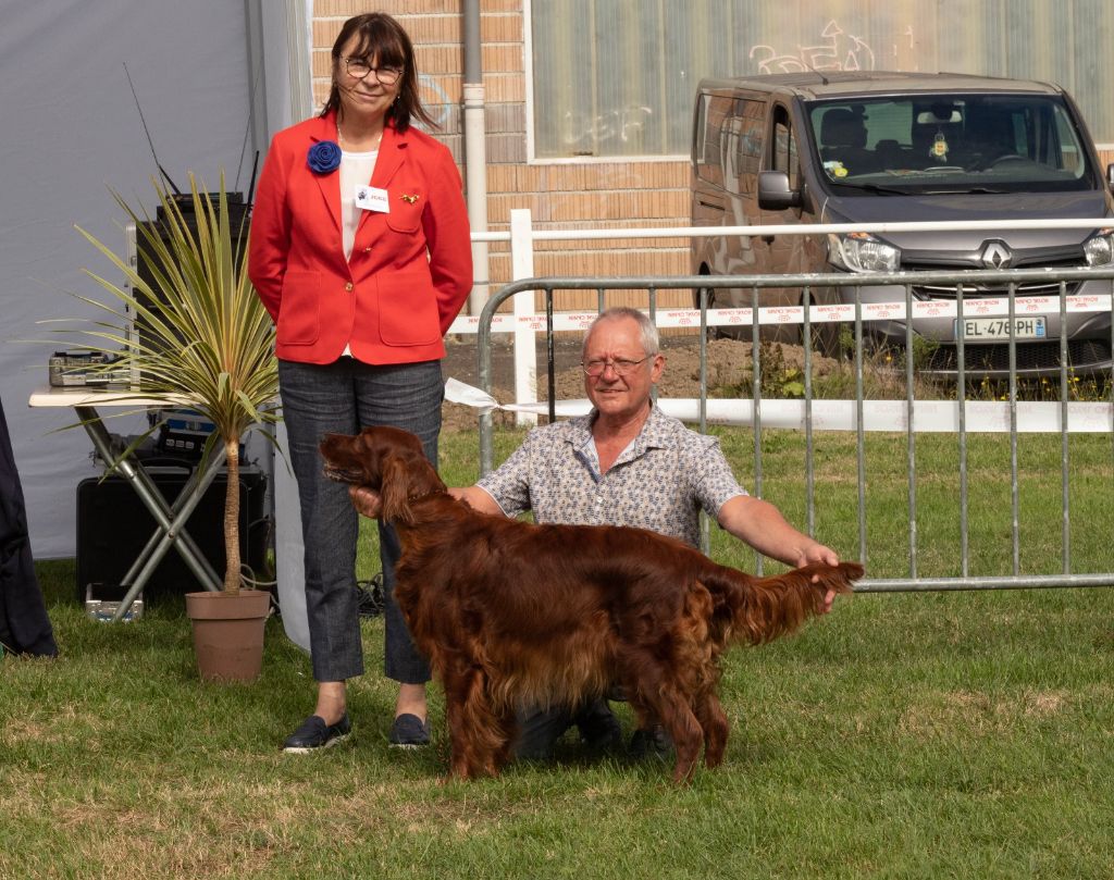 1 fois MEILLEUR BABY 4 fois MEILLEUR PUPPY 4 fois Meilleur jeune 1 fois Meilleur jeune de groupe 7 1 fois 3ème Meilleur jeune de groupe 7 31 CAC (France) dont 1 en spéciale de race 2 RCACIB en intermédiaire 5 RCACIB en ouverte en spéciale de race 3 RCACIB en classe champion 1 RCAC en ouverte en spéciale de race 11 CACIB en ouverte dont 1 en speciale de race 7 CACIB en classe champion dont 1 en spéciale de race 24 fois meilleur champion 6 RCAC en intermédiaire 2 RCACS en classe ouverte dont 1 à Monaco 2 CACIB + 5 CAC + 2 RCACIB 2 FOIS MEILLEUR DE SEXE OPPOSE à SAN MARINO + 1 fois Meilleur de race 1 CACIB + CAC en Italie 1 RCACIB + CAC en Italie 1 RCACIB + RCAC à MONACO 3 CAC + 2 CACIB + 2 fois 2ème meilleur de groupe en BOSNIE 3 CAC EN CROATIE 2Anw Dt CH VDH + 5 R.Anw DT CH VDH + 1 CAC + 2 RCAC + 1 RCACIB BOB en spéciale de Race pointer setter club Bayern (Germanie) 26 fois Meilleur de Race 12 fois meilleur de sexe opposé 2 Fois 1er Groupe 7 5 FOIS 2ème Groupe 7 7 fois 3ème Groupe 7 3 RCACS EN SLOVAQUIE 6 CACS EN ROUMANIE 3 RCACIB EN ROUMANIE 2 FOIS MEILLEUR DE RACE EN ROUMANIE 2 CACS A MONTENEGRO 1 CACIB A MONTENEGRO 1 MEILLEUR DE RACE A MONTENEGRO 2 CACS EN CROATIE 1 RCACS EN CROATIE 1 RCACIB EN CROATIE 1 FOIS MEILLEUR DE SEXE OPPOSE EN CROATIE 1 CACIB + CAC + MEILLEUR DE SEXE OPPOSE AU PORTUGAL 1 CACIB+ CAC + MEILLEUR DE RACE EN ESPAGNE 1 CACIB + CACM - MEILLEUR DE SEXE OPPOSE A MONACO + Qualification Crufts 2 Qualification Crufts (2022 et 2023) Meilleur Setter Irlandais 2022 en France au classement Dogs Révélation Awards Meilleur setter irlandais femelle 2023 au classement Dogs Révélation Awards TITRES DE CHAMPION : CHAMPIONNE DE BEAUTE FEDERALE DE BOSNIE HERZEGOVINE CHAMPIONNE DE BEAUTE DE BOSNIE HERZEGOVINE CHAMPIONNE INTERNATIONALE D'EXPOSITION CHAMPIONNE DE CROATIE CHAMPIONNE DE ROUMANIE GRAND CHAMPION DE ROUMANIE CHAMPION DE MONTENEGRO CHAMPION OF THE BALKANS CHAMPION OF THE MEDITERRANEE CHAMPION OF THE ADRIATIQUE CHAMPION OF NATO CHAMPION OF THE YOUGOSLAVIE CHAMPION SAINT MARIN "Italie" CHAMPIONNE D'ALLEMAGNE VDH