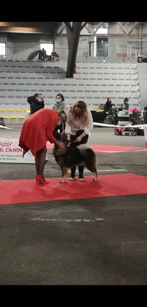Plusieurs excellent notamment en Nationale d'Elevage, Championnat d'Europe et de France. Il a eu un rcacs, un cacs a des spéciales de races, et d'autres Rcacs, Cacs, Rcacib dans les expos nationales et internationales.