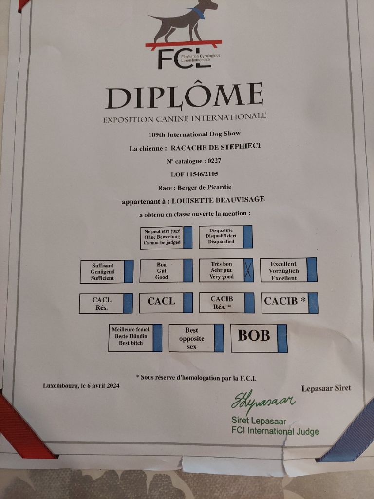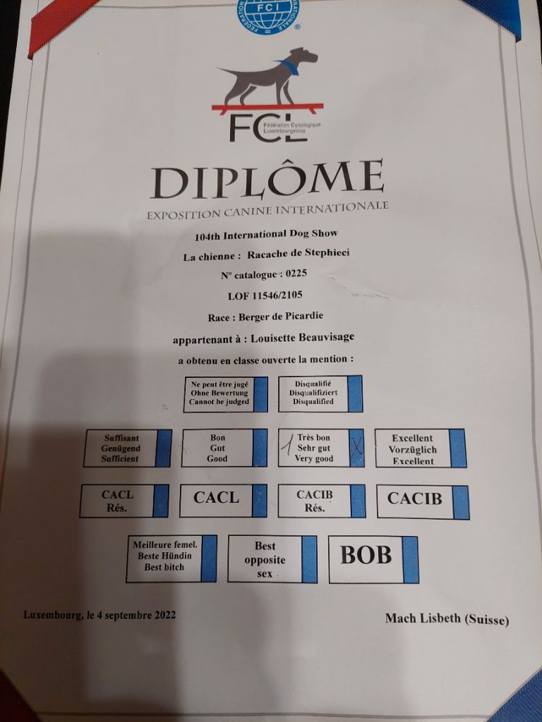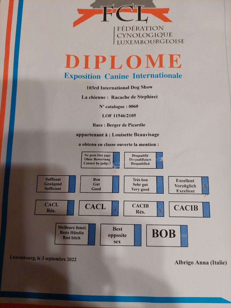 - 1ère EXCELLENT CACS meilleure de race de sexe opposé