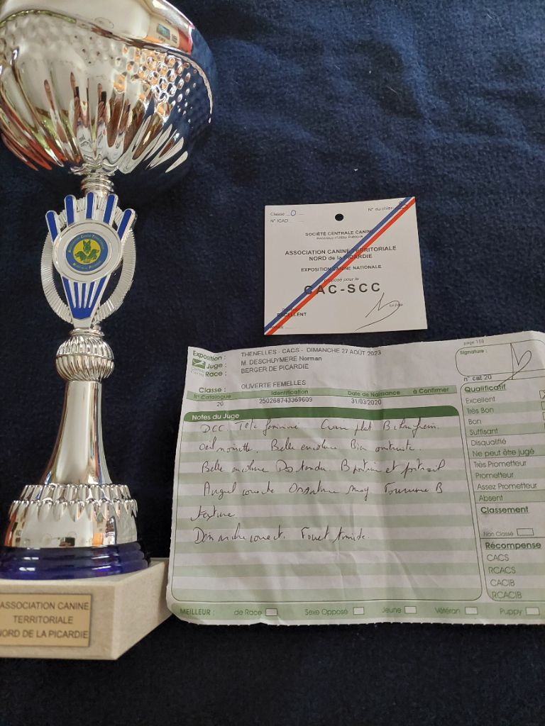 le juge a trouvé la chienne bien dans le type, un excellent format , un poil d'excellent qualité , de belles allures, une couleur fauve très belle et homogène