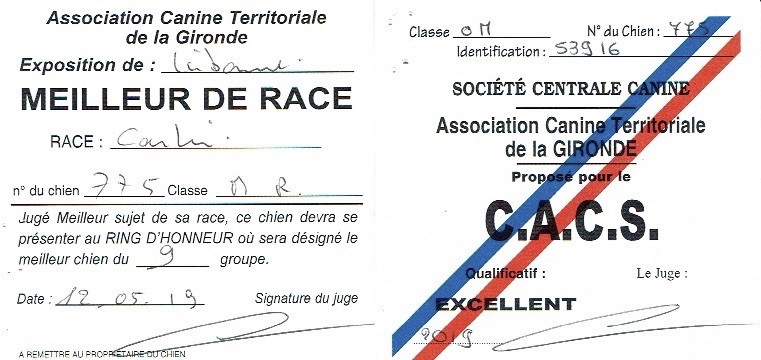 - 1er EX - Meilleur de race - Meilleur jeune