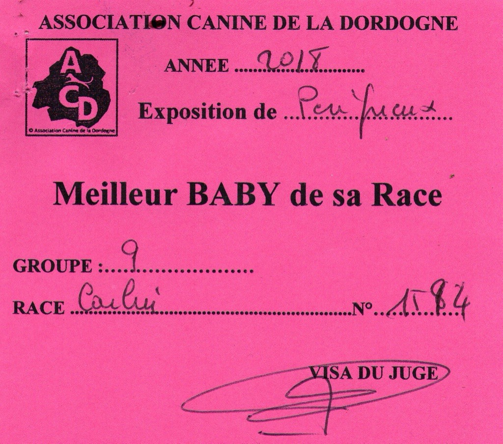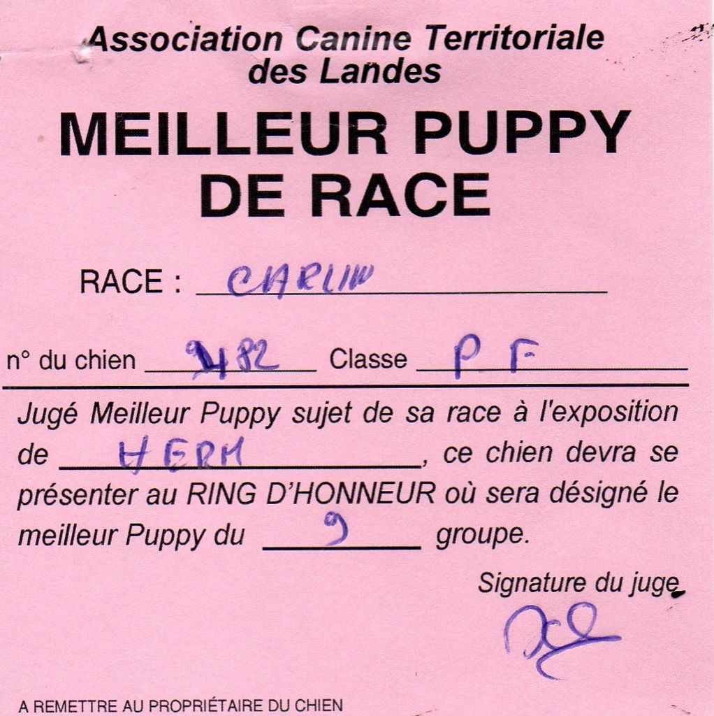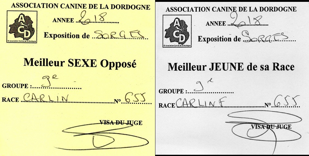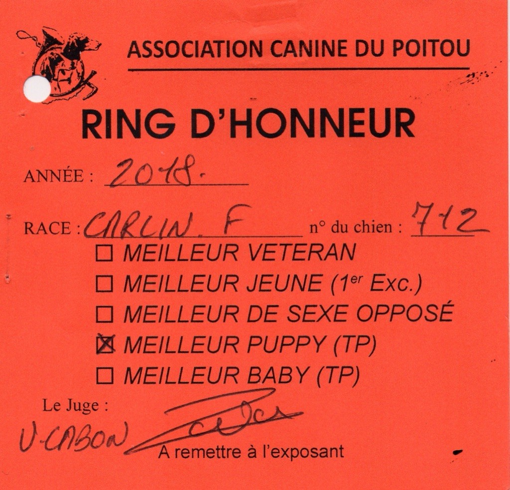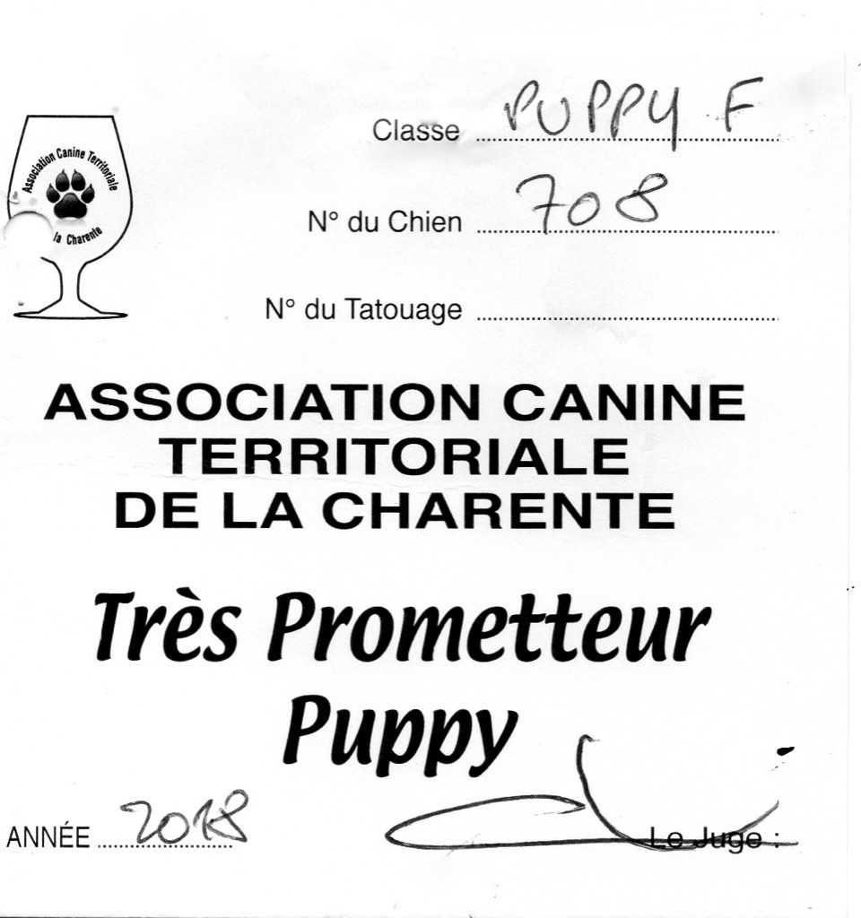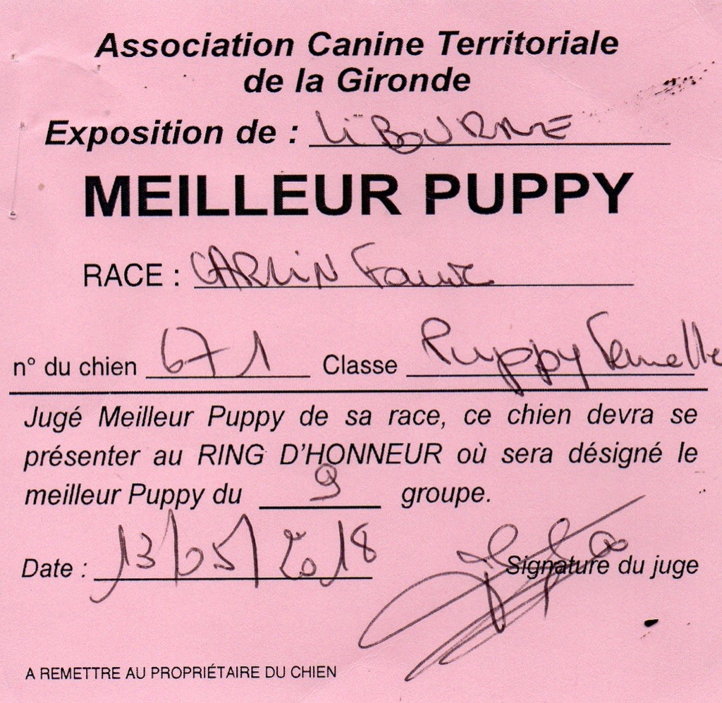Manifestion : classe puppy femelle fauve masque noir - Juge : Mr Forte Mickael