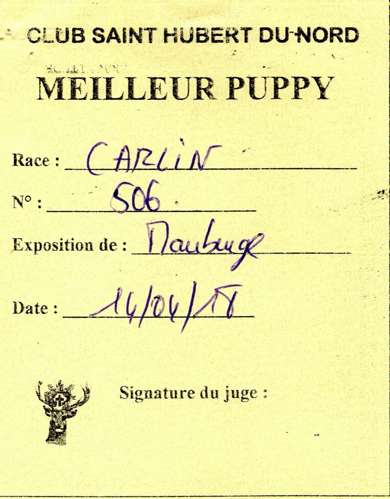Manifestion : classe puppy femelle fauve masque noir - Juge : Mr Klein Jean Claude