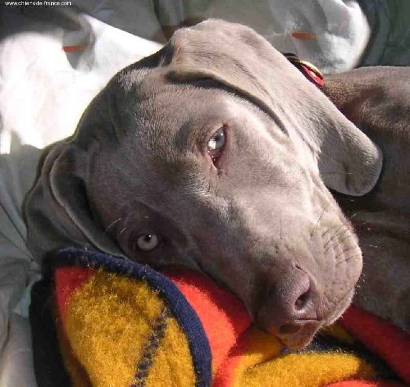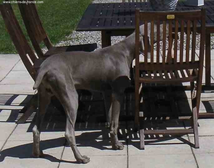 Chien Braque de Weimar Uturn Des gris de tanis