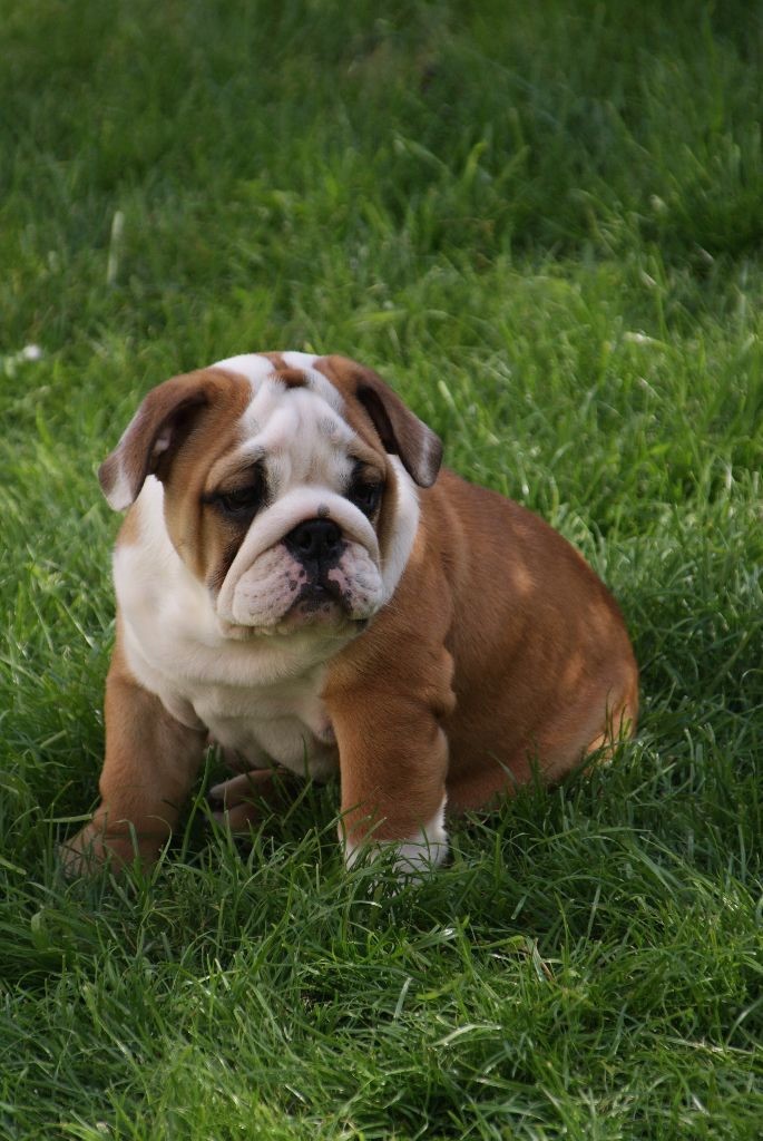 6 mois Jolie petite chienne Excellentes rides, un peu de sclérotique apparente Excellente machoire, épaule, poitrine, ossature, pieds, dos court, Très bonne angulation Excellentes allures typiques