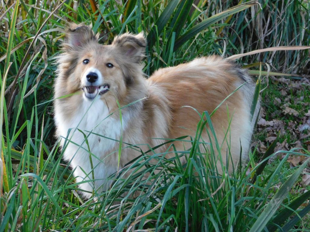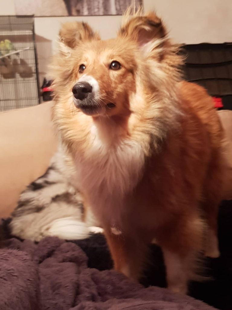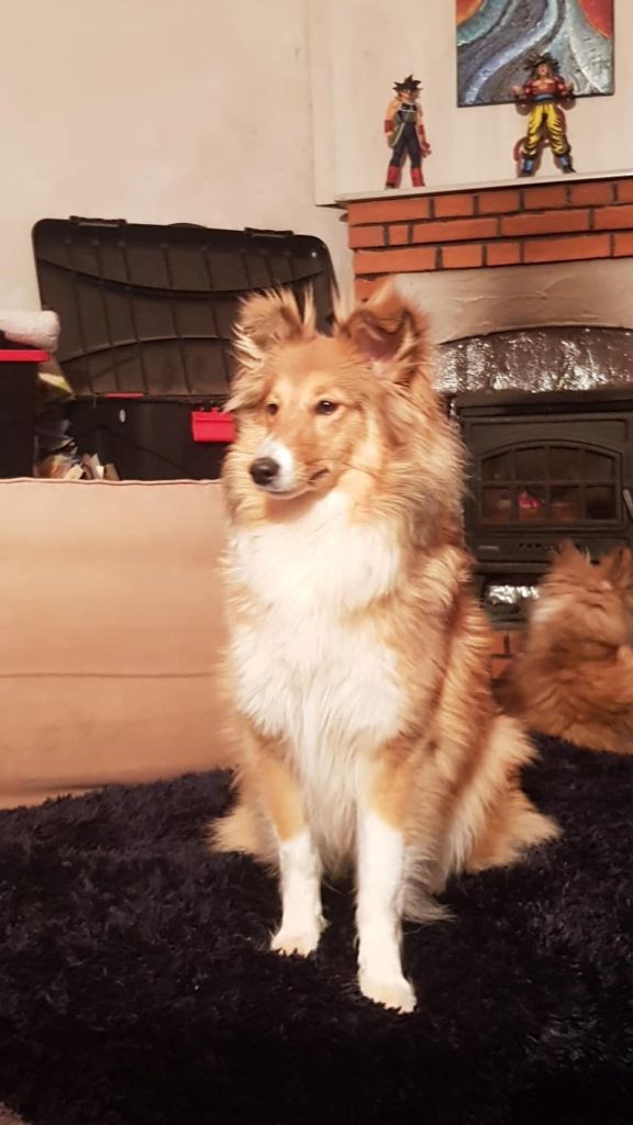 Chien Shetland Sheepdog Red eyes sword Du Jardin D'aouregan