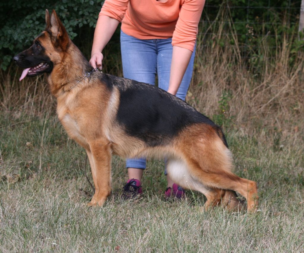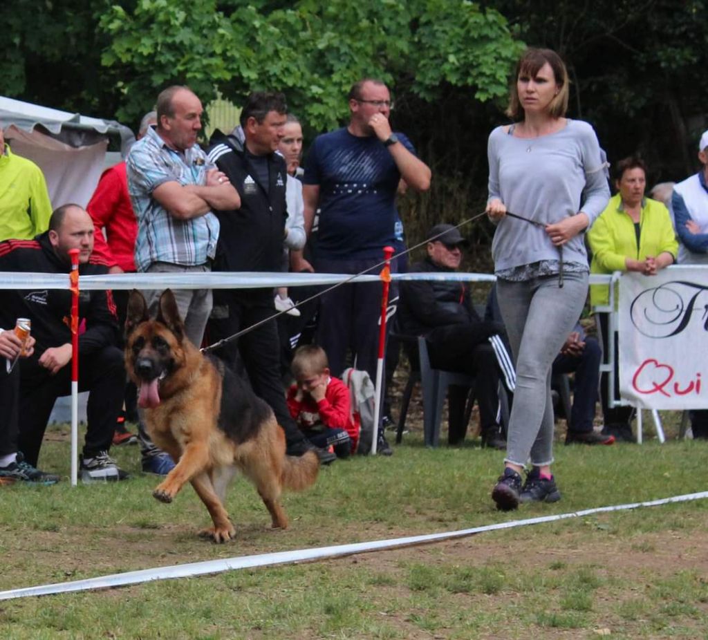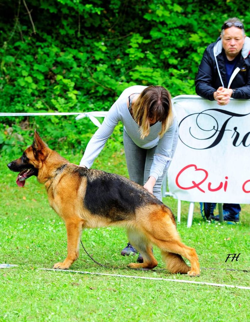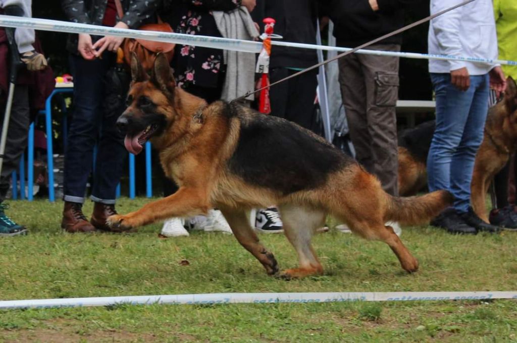 - 03/09/2022 Championnat de France du berger allemand partie une nouvelle fois 3ème terminera 6ème excellent une des rares chiennes dans cette classe ouverte a avoir reussie son test de courage à l'épreuve imposée qui lui permet d'obtenir le titre de Lice Recommandée en élevage.