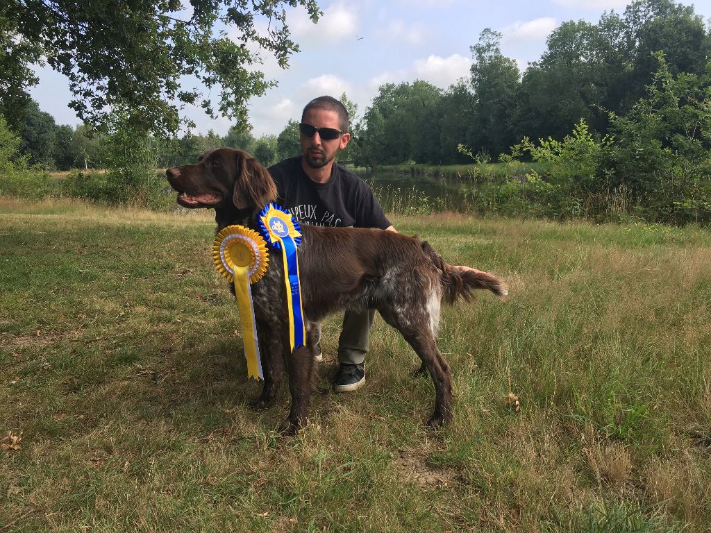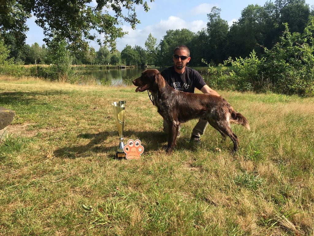 Un excellent parcours du chien qui utilise très bien le terrain et est à l'écoute de son conducteur. Il a montré un très bel arrêt à terre, a attendu son conducteur et a eu un très bon rappel à l'envol. Les conditions météo n'étaient pourtant pas en faveur des chiens (forte chaleur et peu d'air au sol).