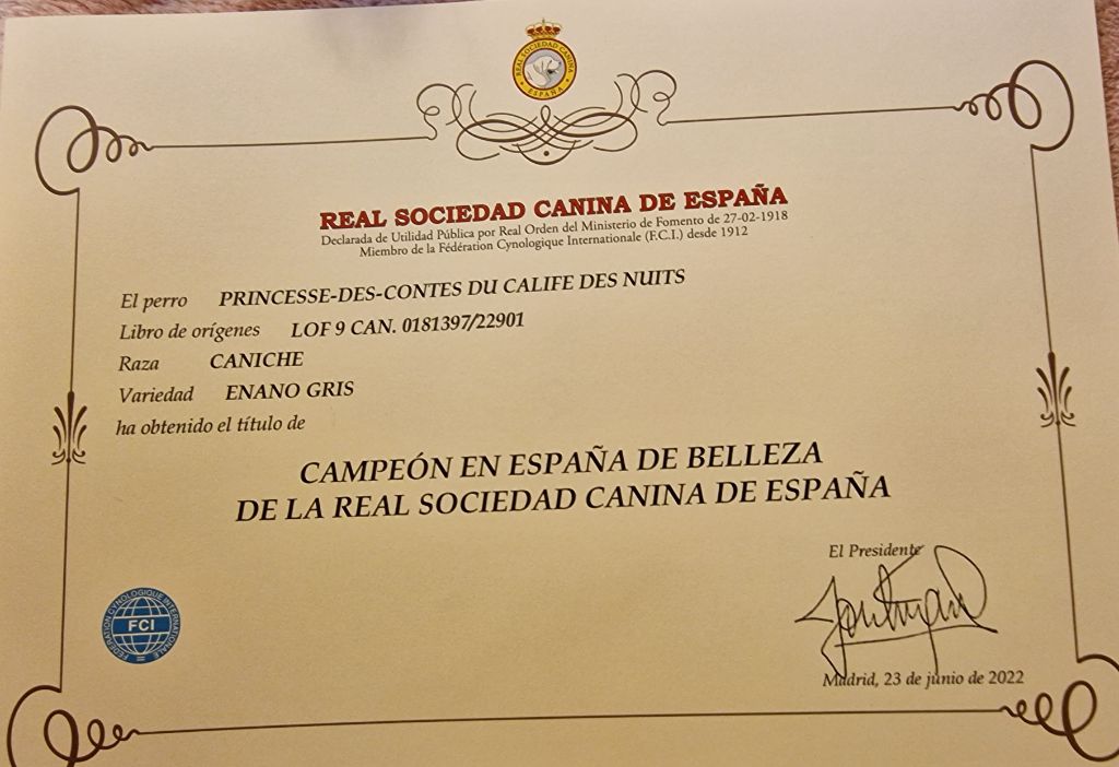 VICE-CHAMPIONNE DU MONDE CANICHE NAIN GRIS 2022 (MADRID)