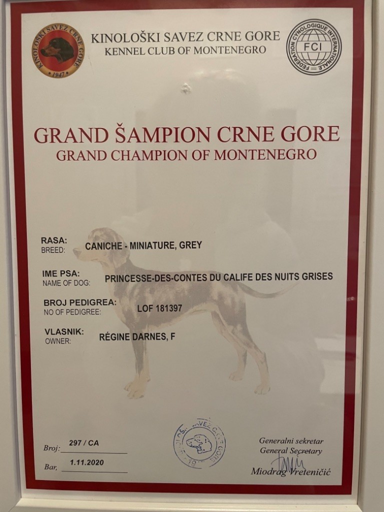 - GRANDE CHAMPIONNE DU MONTÉNÉGRO 2020