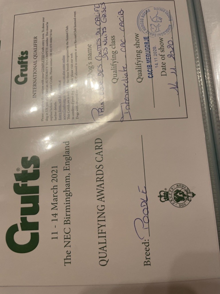 Suite à ce CACIB en France, Princesse devient CHAMPIONNE INTERNATIONALE DE BEAUTÉ.