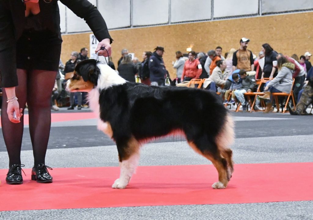 DCCJolie sujetExc type format avec belle tête bien proportionnée Très bonnes oreillesExc encolure ligne du dessus Exc croupeExc angulationPoitrine correcteExc pied bonne démarche.