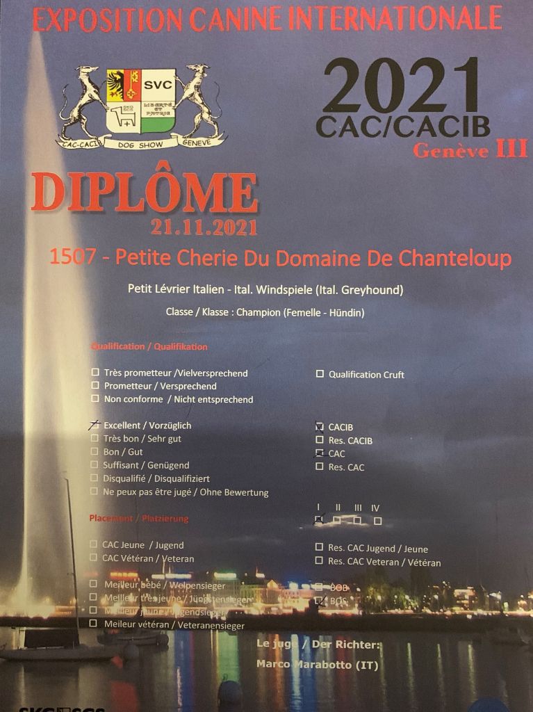 - 1er Exc CAC CACIB BOB SWISS SHOW CHAMPION