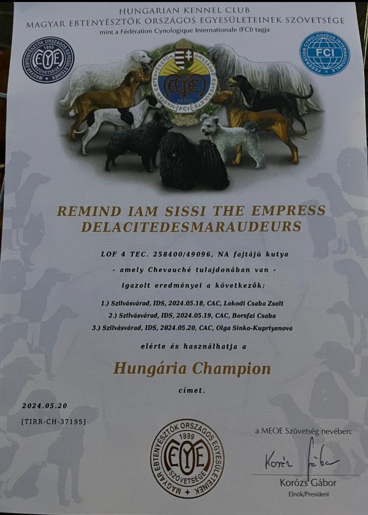 Manifestion : EXPOSITION CANINE INTERNATIONALE DE HONGRIE - Juge : Mr CSABA ZSOLT LOKODI
