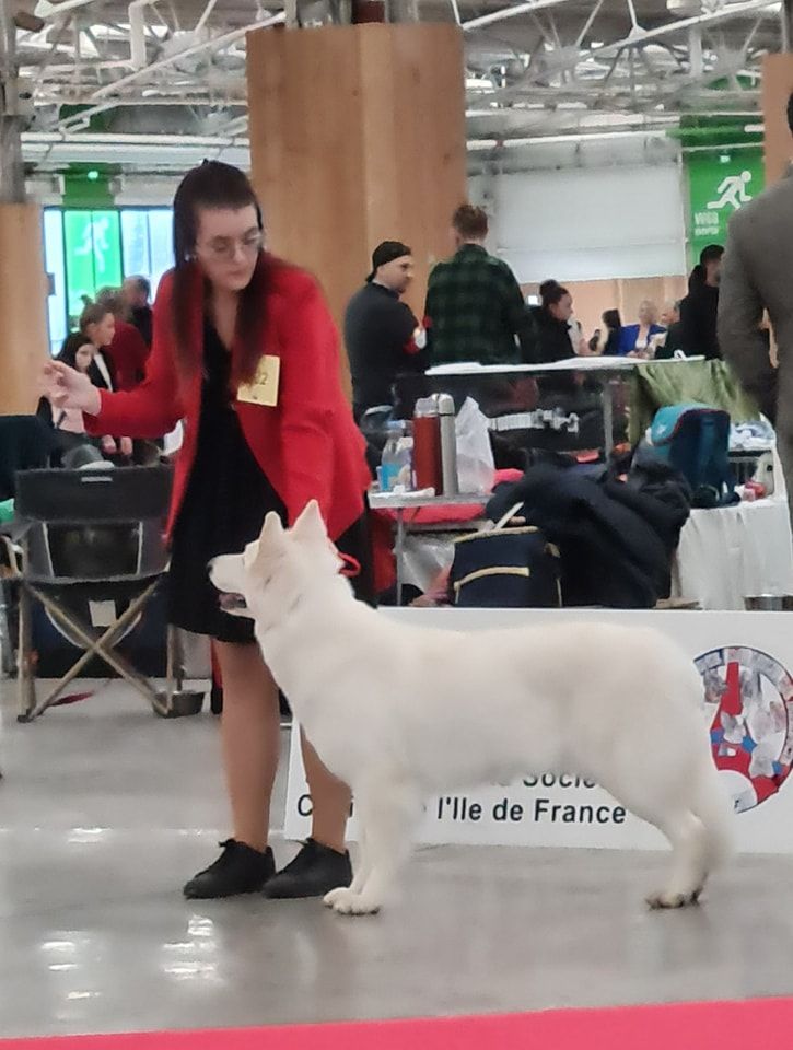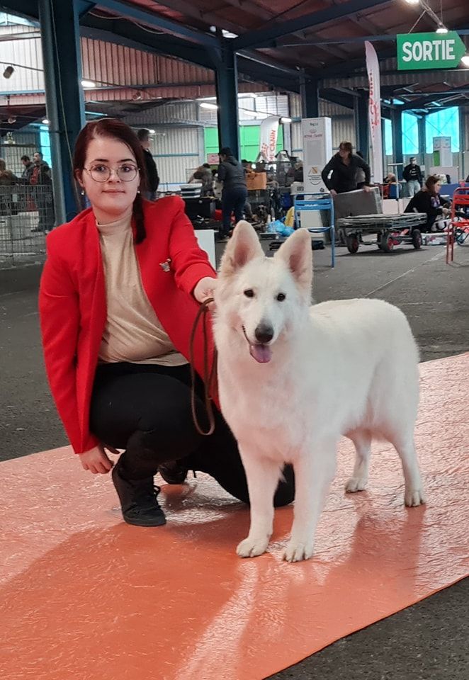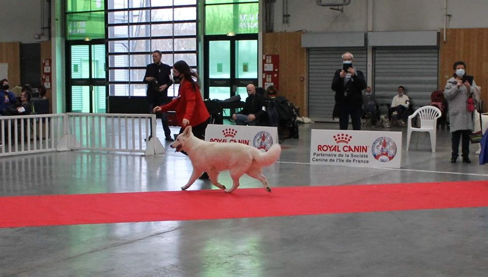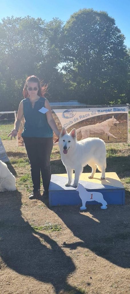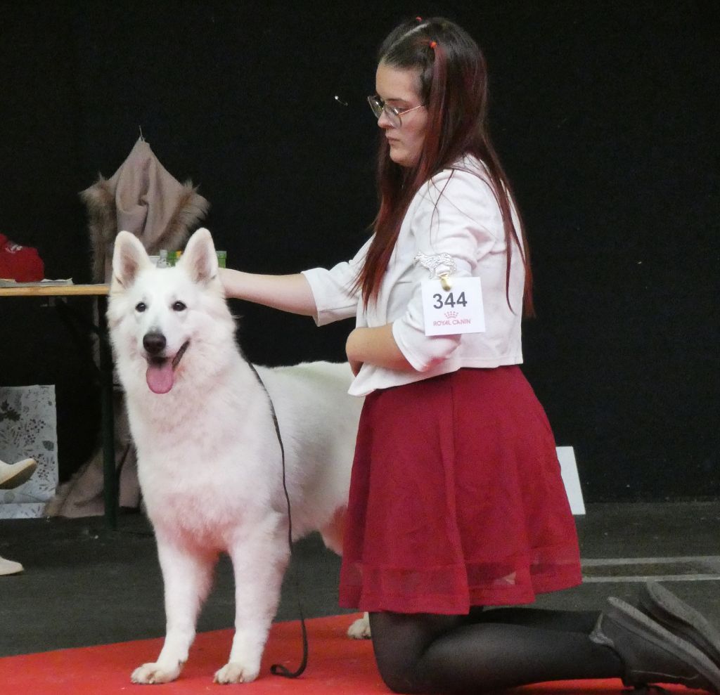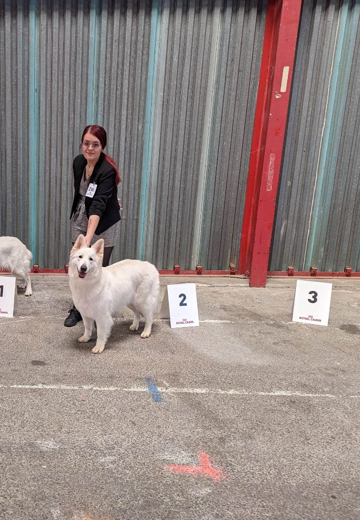 Très bonne tête, Oeil de bonne couleur, Excellente pigmentation paupière et truffe, Oreille bien portée, Bonne encolure, Pointe supérieure de l'épaule un peu haute, Bonne ligne de dos, Arrière main bien construit, Cuisse bien galbée, Très bonne attache de fouet bien portée, Mouvement correct dans ses 3 dimensions