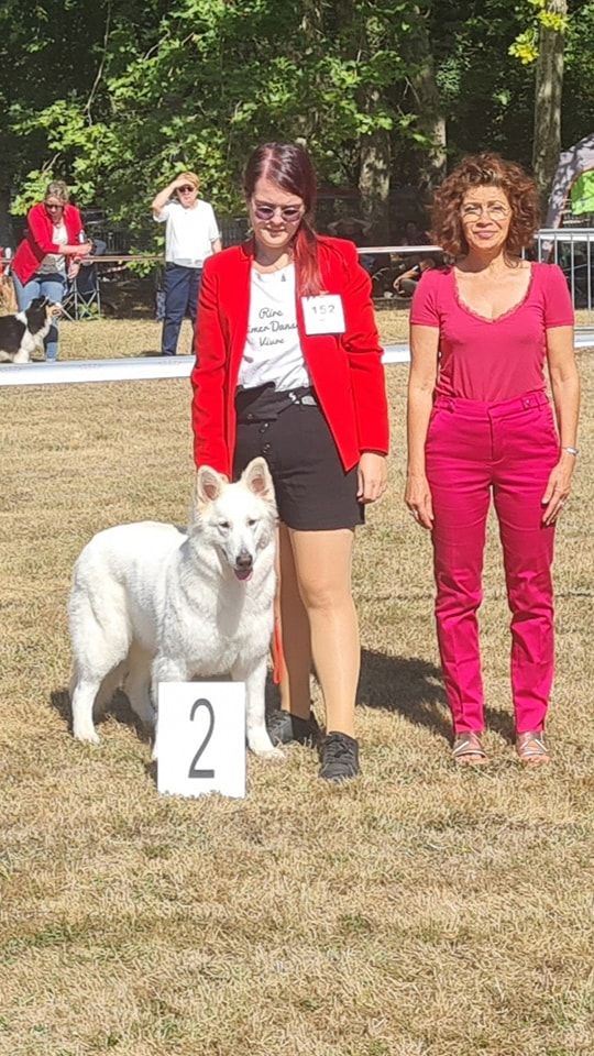 DCC, Joli modèle, Excellente ligne de dessus, Belle encolure, Jolie tête féminine, Oeil foncé, Excellent pigmentation, Avant bras un peu court, Excellente ossature, Excellente poitrine, Très bonne arrière main, Excellente attache de fouet, Allure correct qui pourrait être plus fonctionnelle