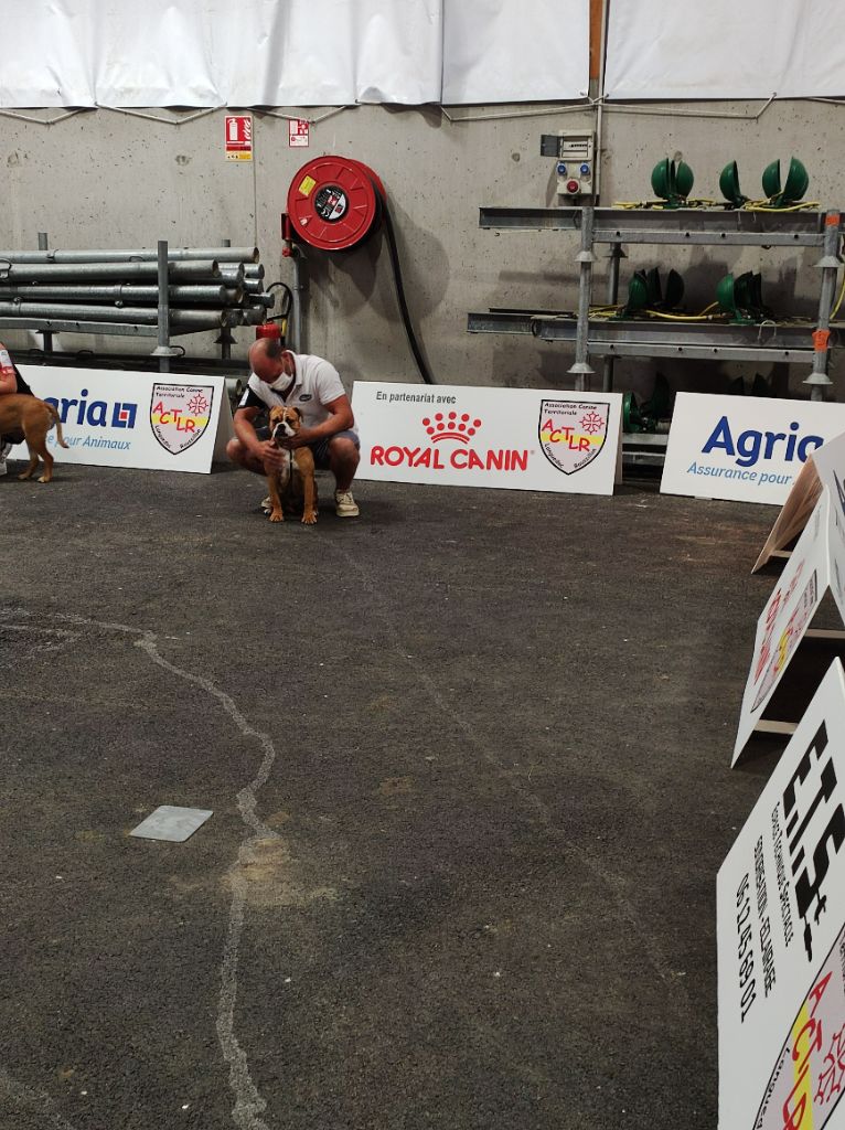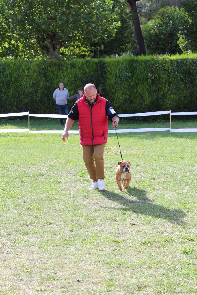 FEMELLE PUISSANTE, EXC OSSATURE PROPORTION, EXC ANGULATION AVANT/ ARRIERE, TRES MAL A L'AISE SUR LE RING, TRES BELLE TETE, EXC CRANE, SILLON EXPRESSION TYPIQUE, ALLURE DIFFICILE A APPRECIER, MANQUE DE RING