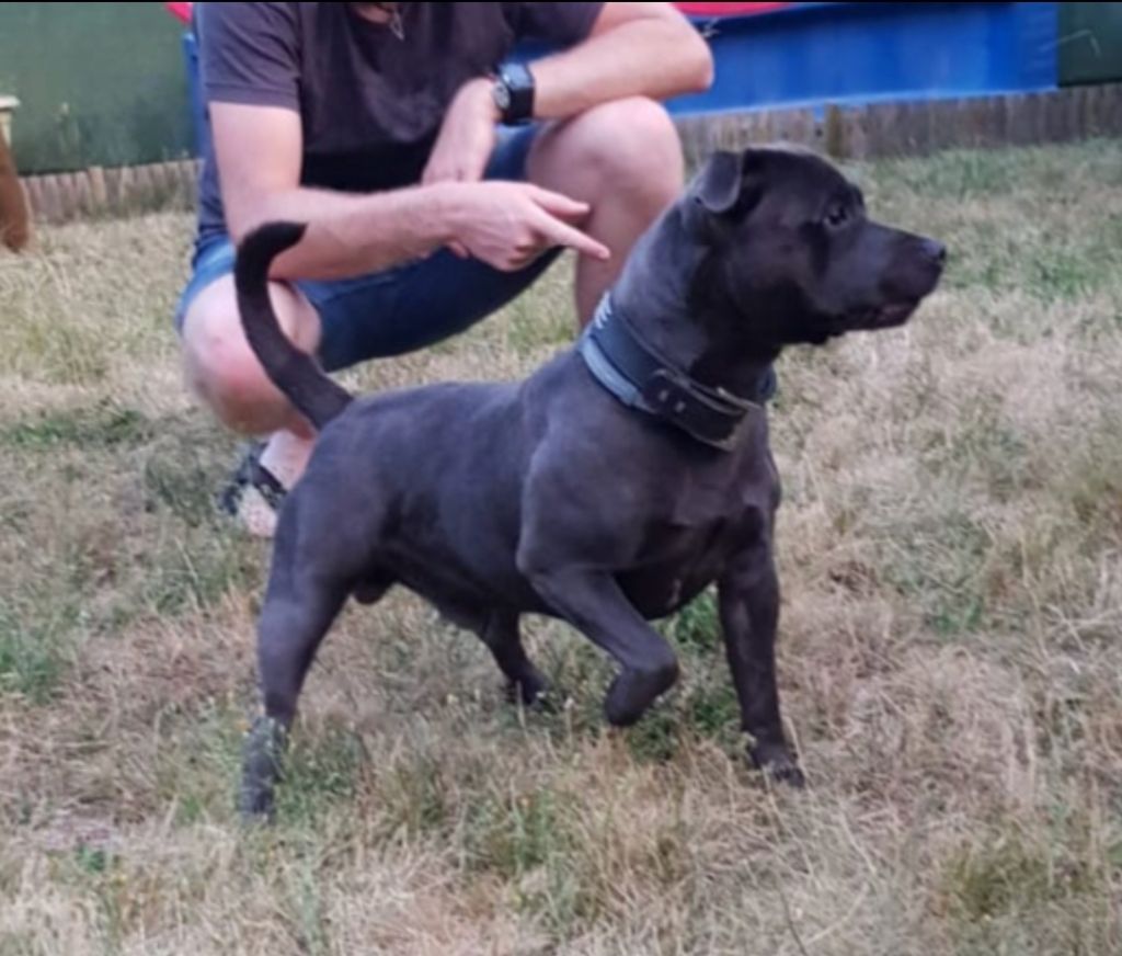 1er saillie avec femmelle staffordshire bull terrier bleu: 8 chiots en très bonne santé de couleur bleu avec tache blanche sur le buste ( saillie effectuée en 1 jours et la femmelle est venu à notre domiciles)