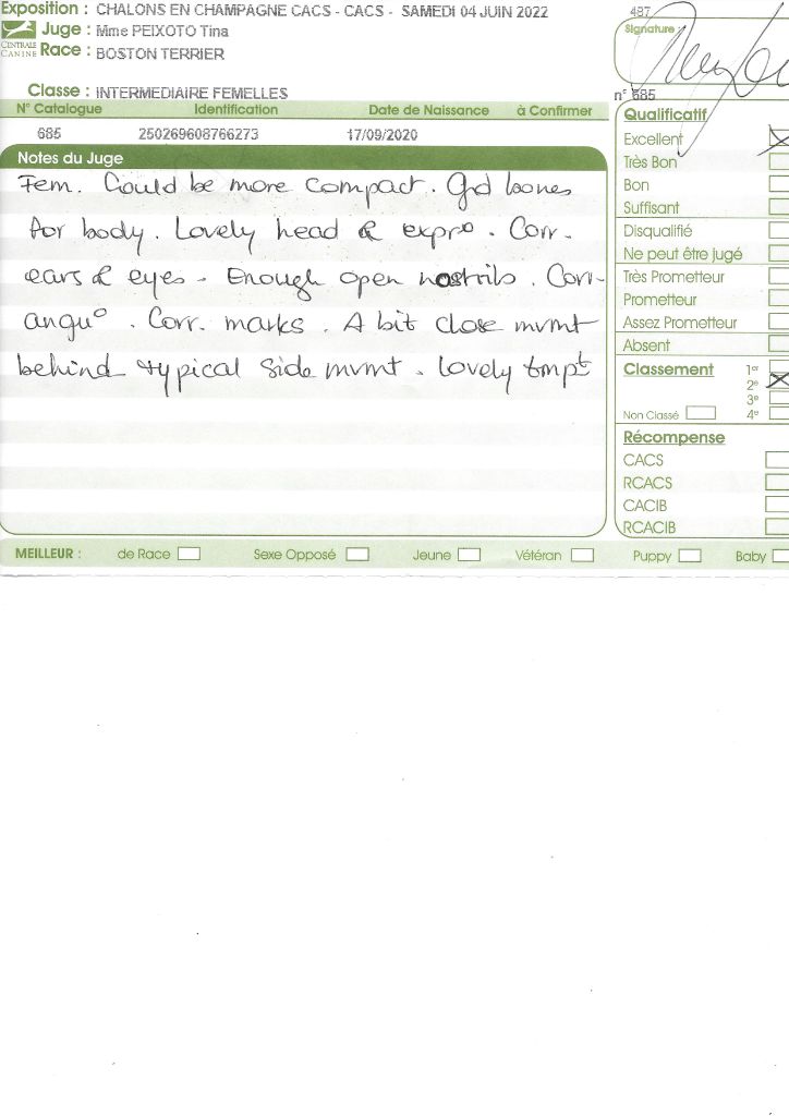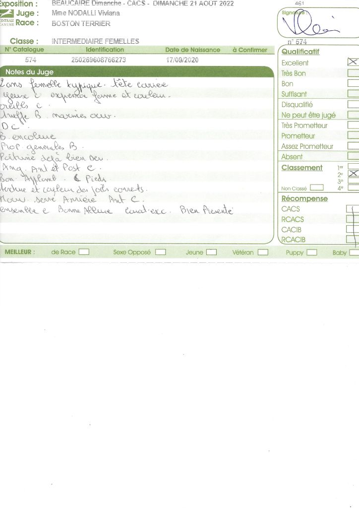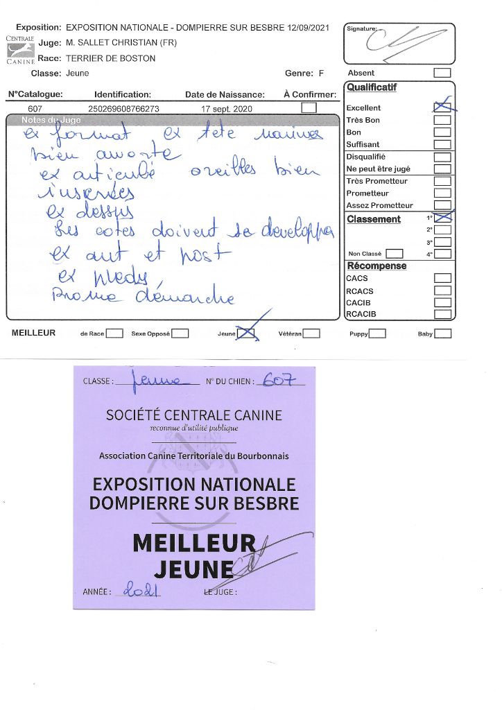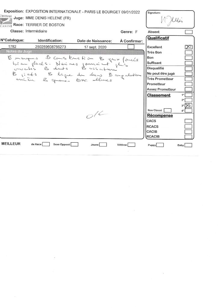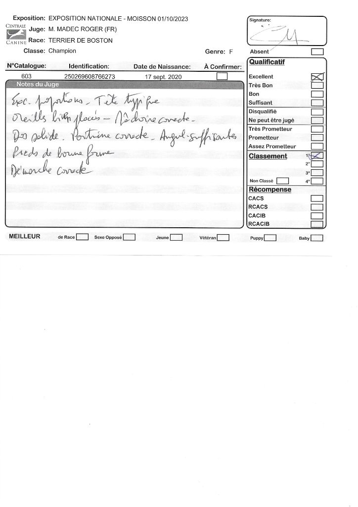 Manifestion : CACS Spéciale Boston - Juge : Mr PICHARD Laurent