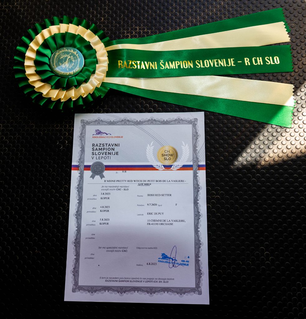 Chien Setter irlandais rouge CH. R'mione pretty red witch Du Petit Bois De La Vaslière