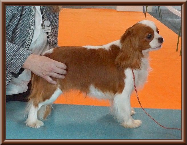 DCC - Exc crâne et chanfrein - Oreilles bien insérées et oeil de bonne forme et bien placés - Exc dessus - Les côtes doivent encore légèrement se développer - Queue bien insérée - Exc épaule, angulation arrière et fourrure - Bonne démarche