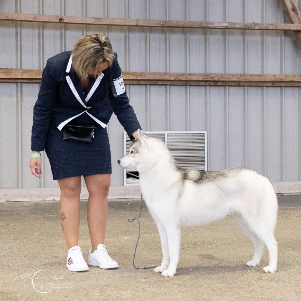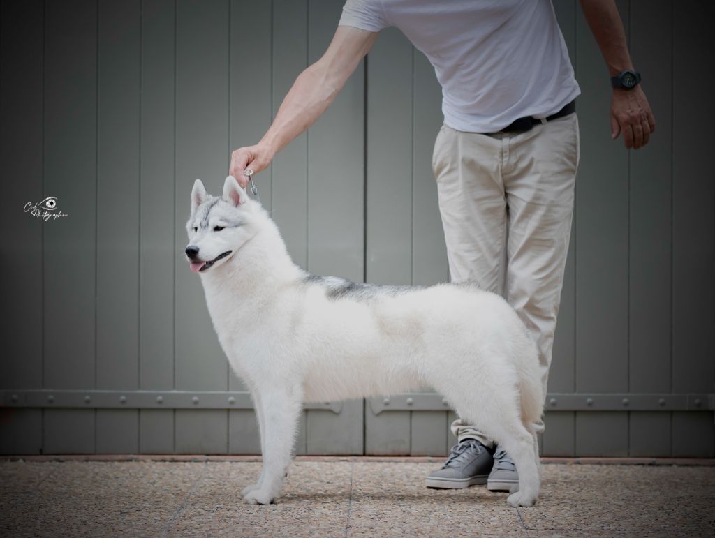 DCC, excellente tête typique, excellent port d'oreille ,excellente sortie d'encolure, ligne de dos, très bon port de queue, bonne poitrine pas assez développée, excellente allures de profil, serre des antérieurs.
