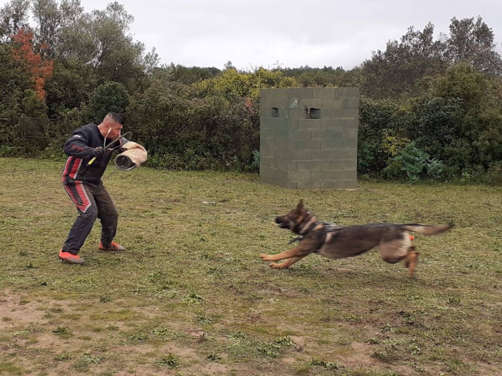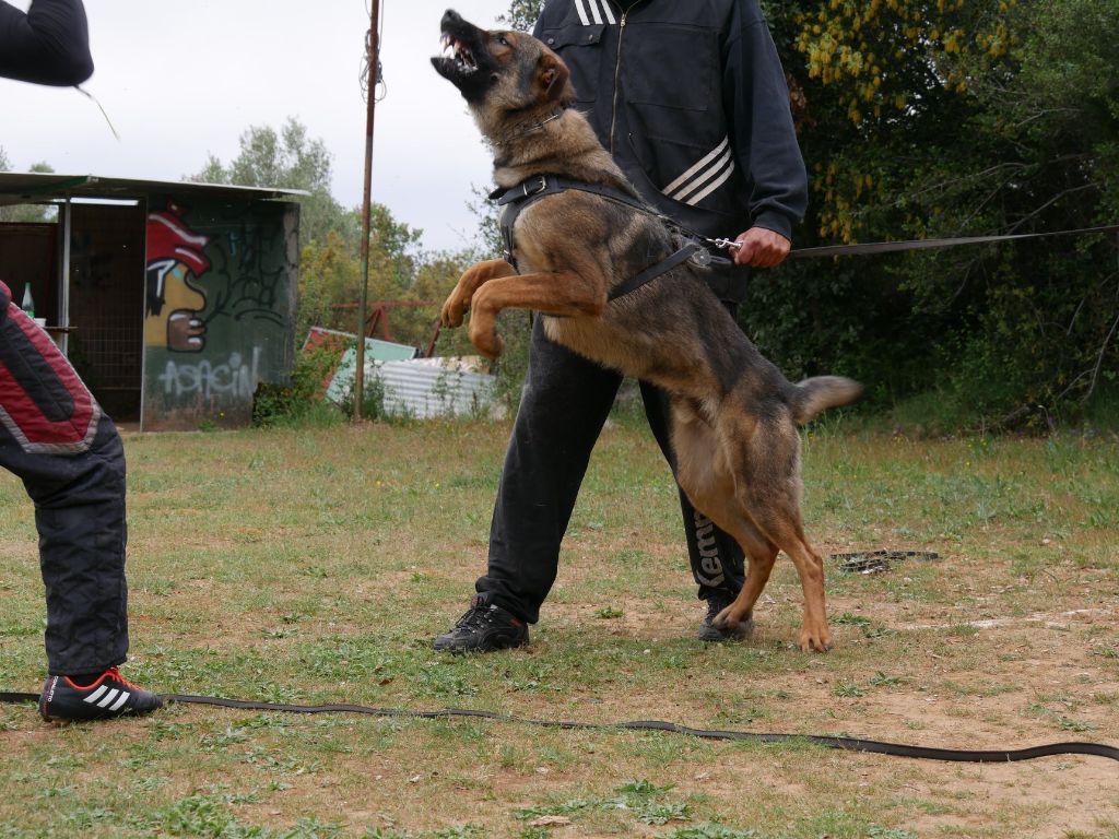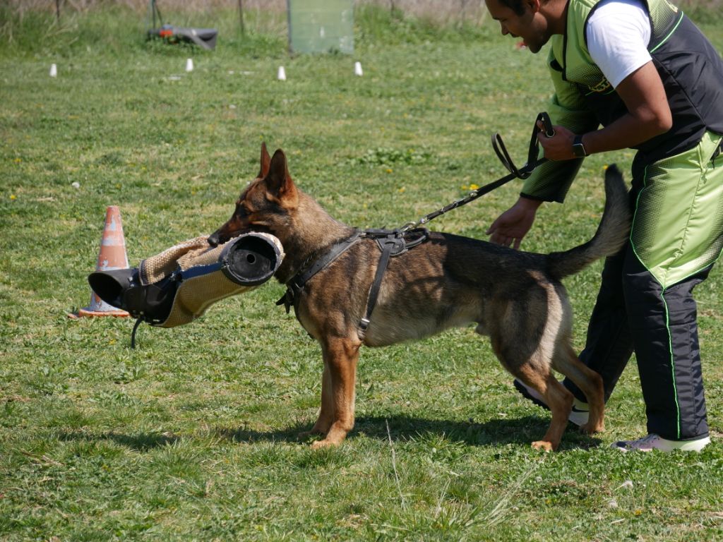 Chien en préparation d'IGP, chien très puissant, morsure profonde.