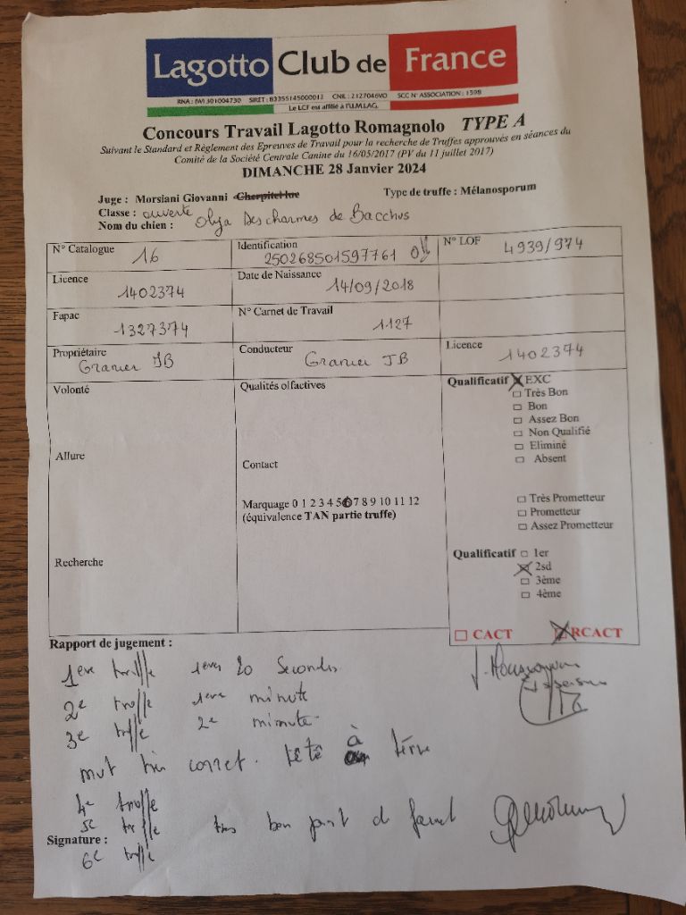 Olya est une chienne dynamique, joueuse et très affectueuse . Comme tous les lagottos elle est très proche de son maitre et fait partie intégrante de la famille. C'est une excellente chienne de cavage.