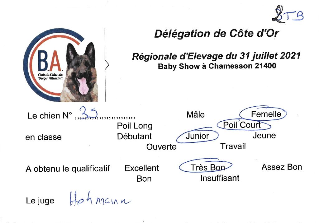 Manifestion : Régionale d'Elevage. Classe 12 / 18 Mois - Juge : ALLEMAND du SV : JÜRGEN MAÏBUCHEN