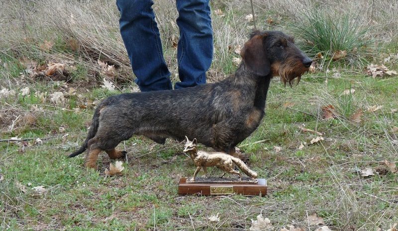 Villano es un teckel realmente bonito, con huesos fuertes, muy potente y con inmejorable calidad de pelo. En su estructura y tipicidad se nota la herencia de su padre Frikk.
