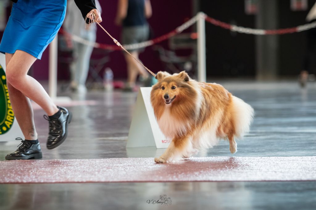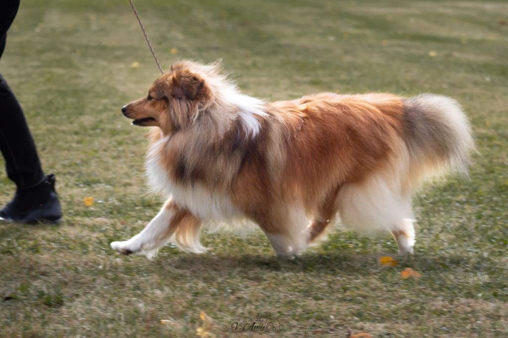 Très jolie chienne, très en fourrure, très jolie expression, oeil pourrait être plus en amande Ex mouvement