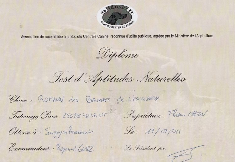 Chien Setter irlandais rouge Romann' des Bruyères de l'Escrebieux
